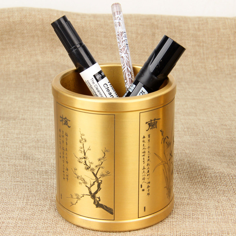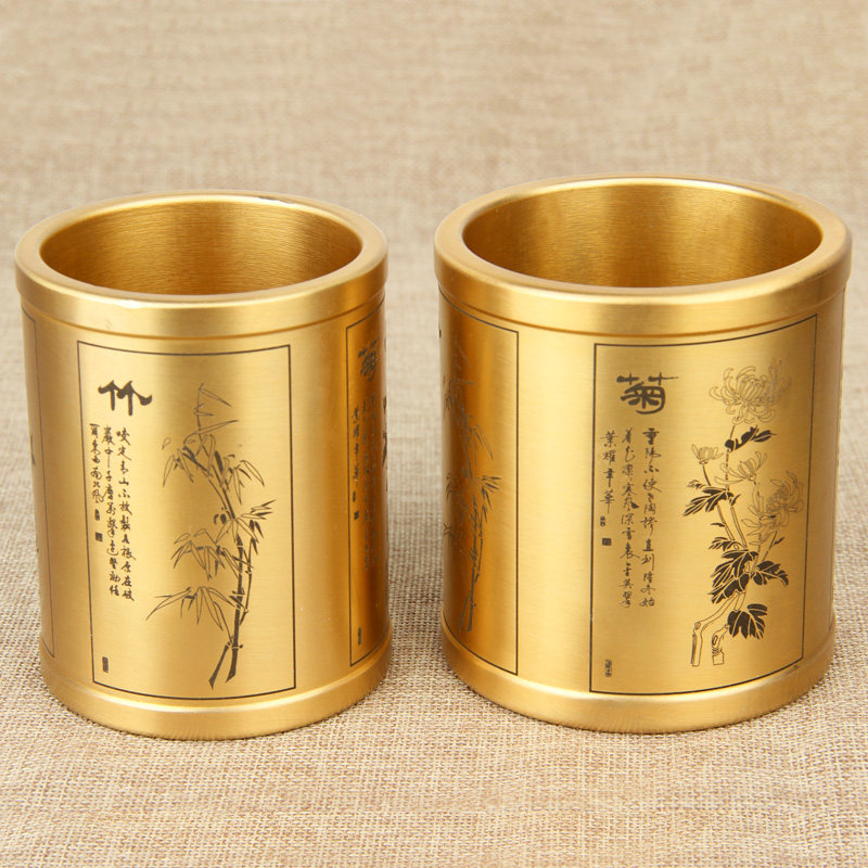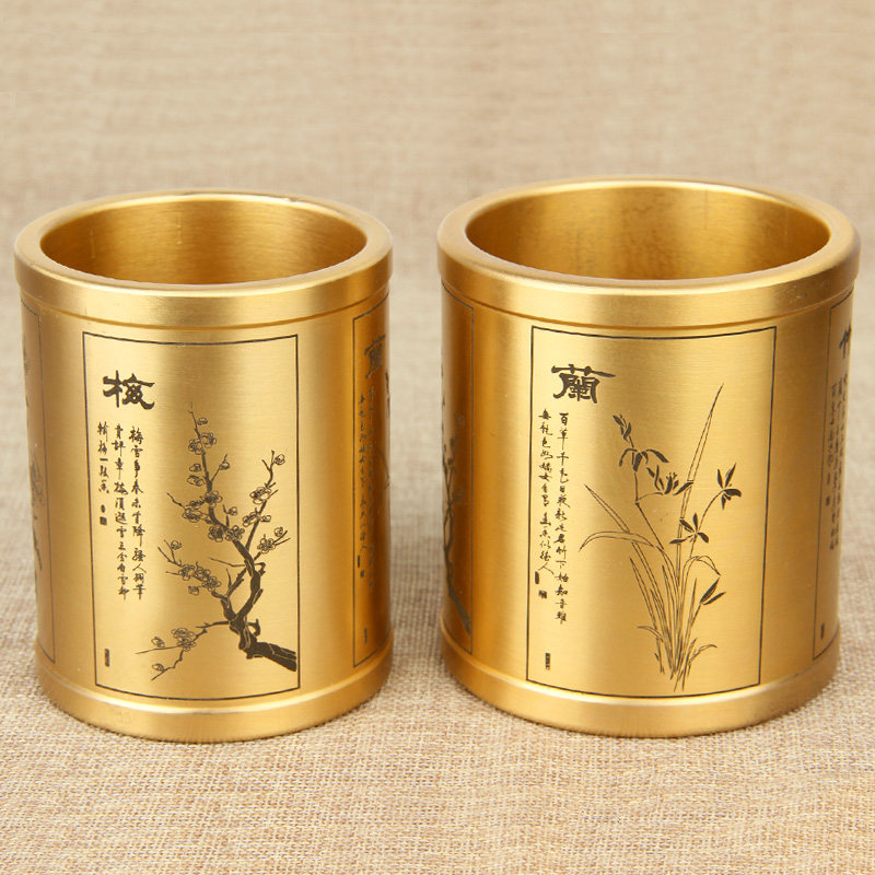 铜五牛图笔筒 铜笔筒摆件铜大梅兰竹菊笔筒摆件商务礼品办公笔筒