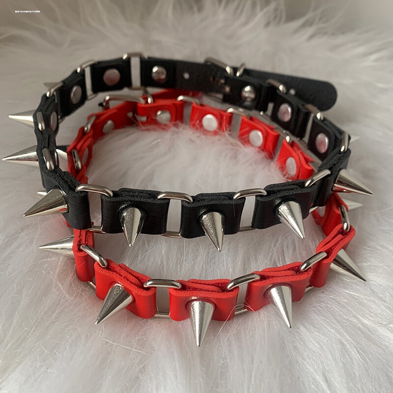 朋克哥特式气质拼接颈链颈带个性潮流连环扣尖钉铆钉项链PU皮项圈