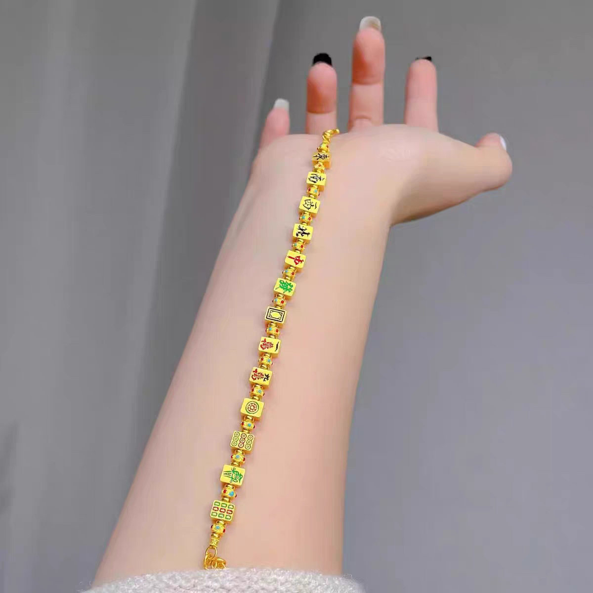 沙金麻将手链女2025新款十三幺本命年红中发财送女友饰品转运礼物