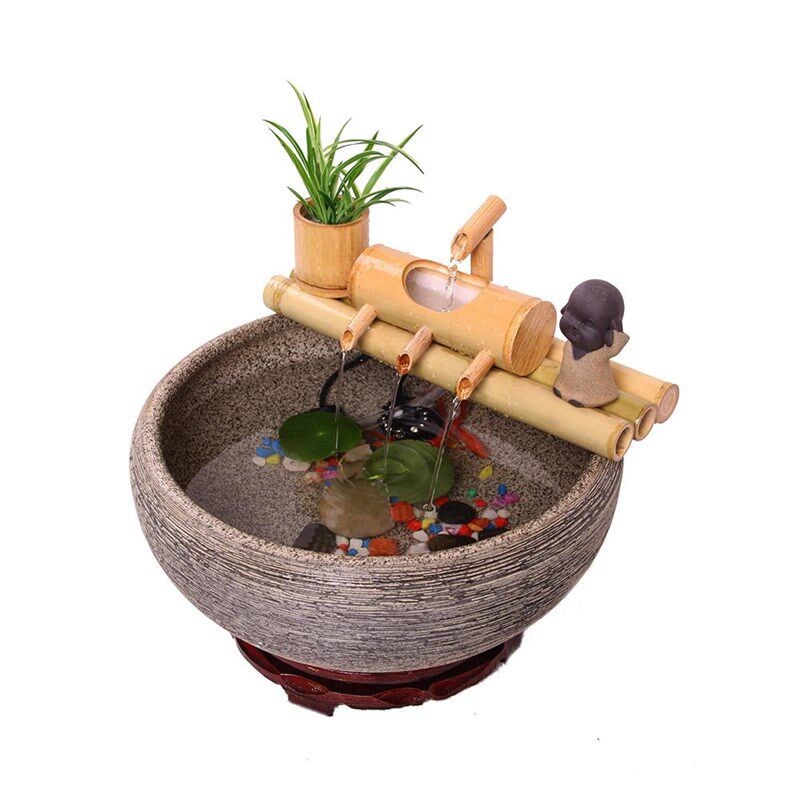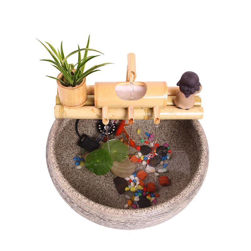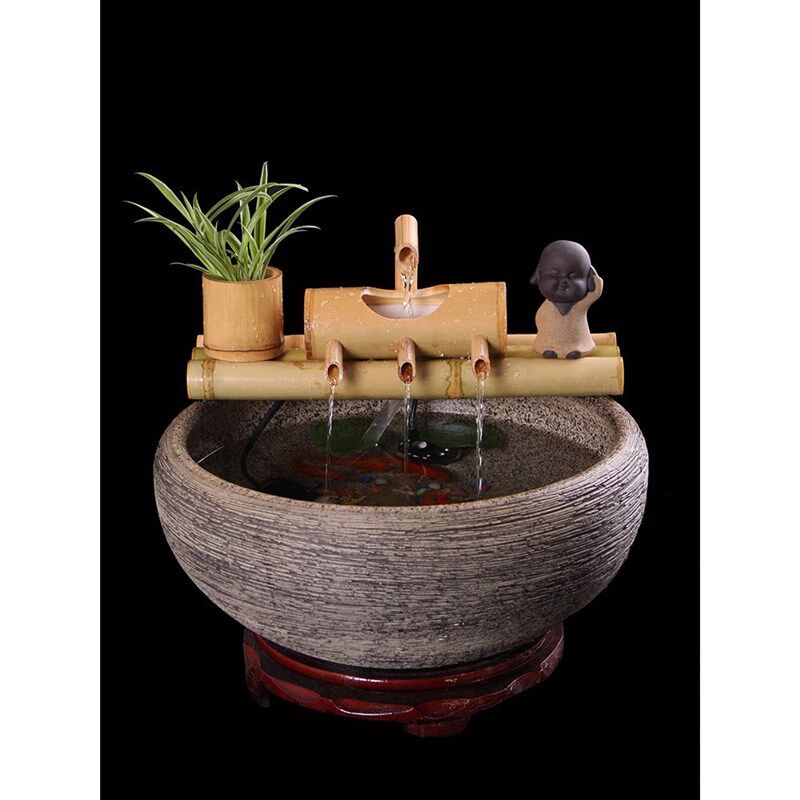 假山流水器水循环陶瓷鱼缸客厅室内装饰竹排喷泉景观造景摆件