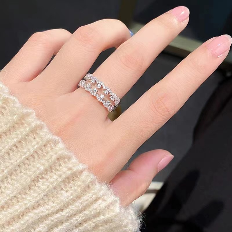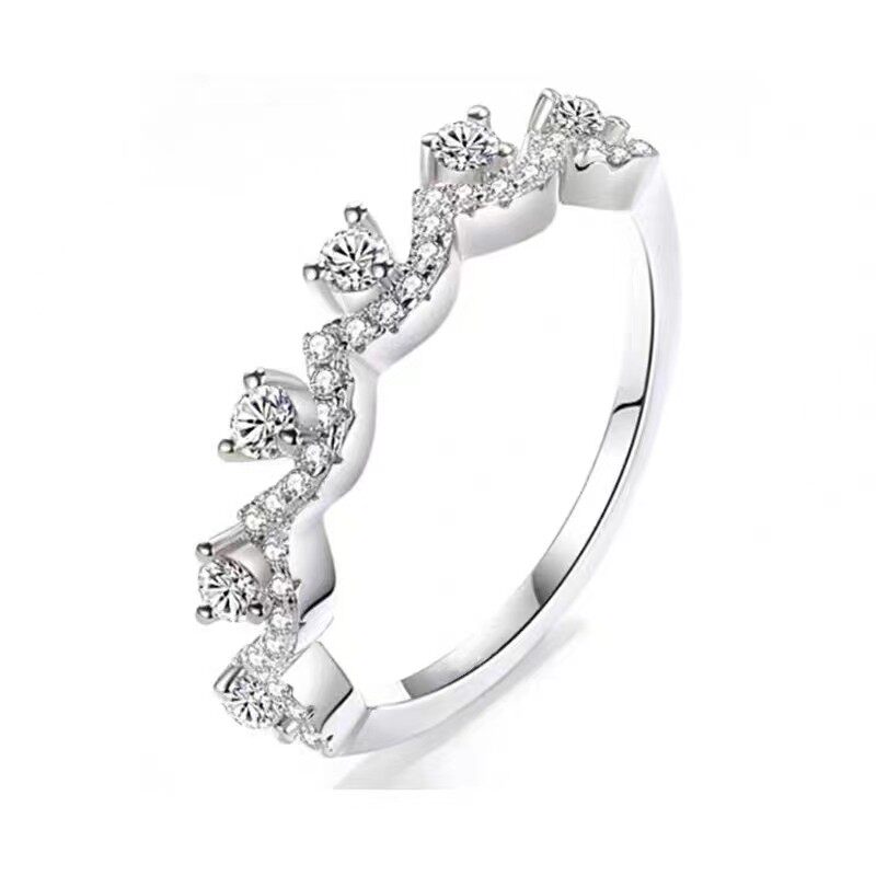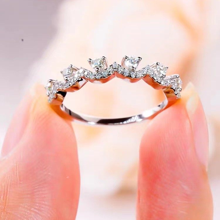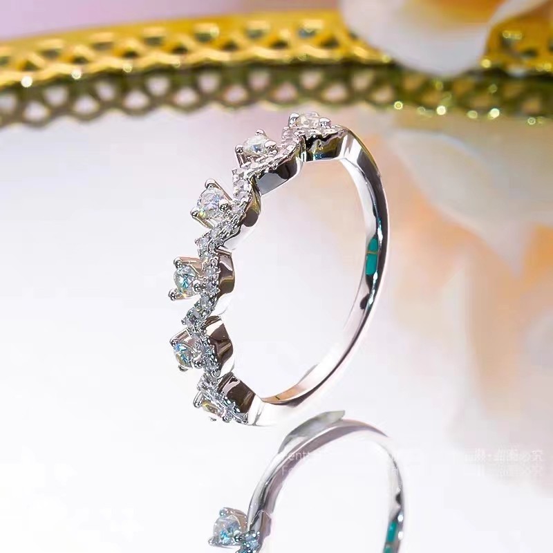 PT950纯铂金镶嵌美国进口D色莫桑石满钻蕾丝皇冠戒指时尚简约百搭