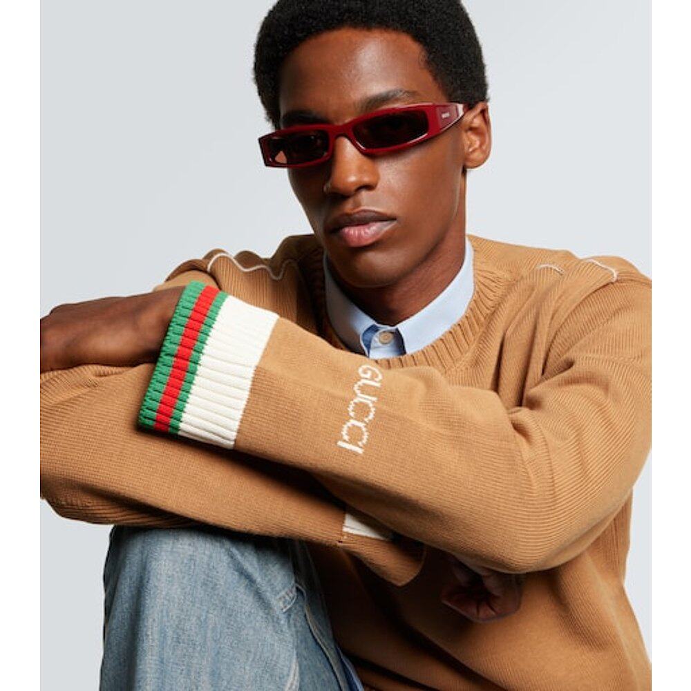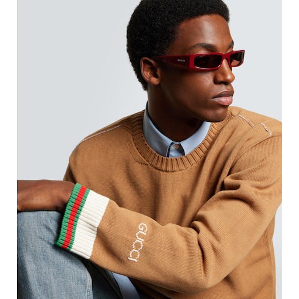 Gucci 古驰 男士 徽标矩形太阳眼镜 red红色 舒适时尚