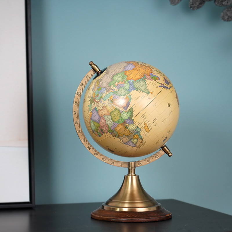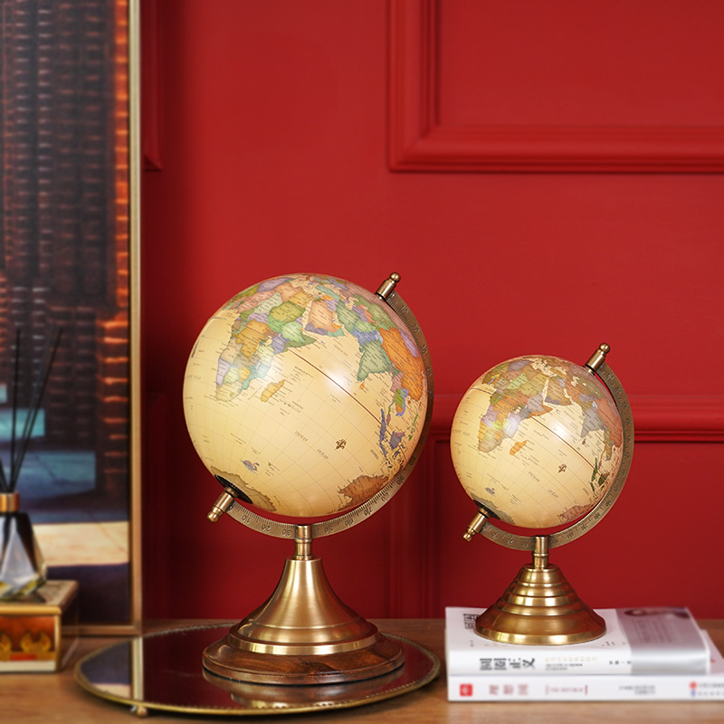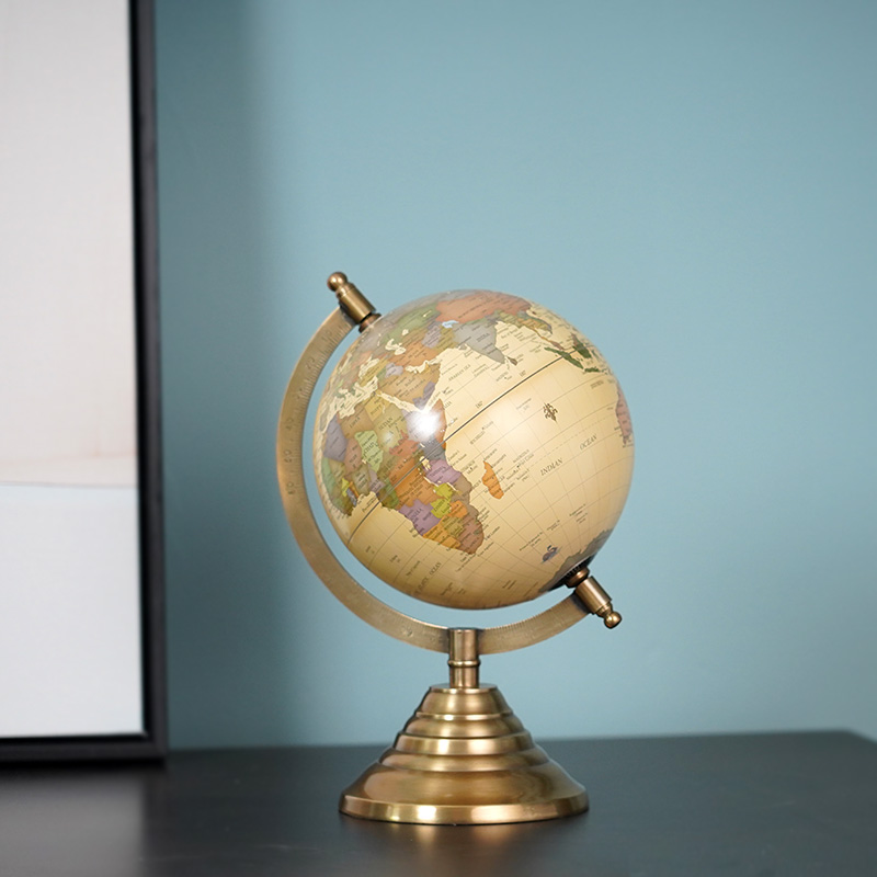 印度进口手工实木黄铜地球仪摆件书房装饰品欧式工艺品摆设送礼