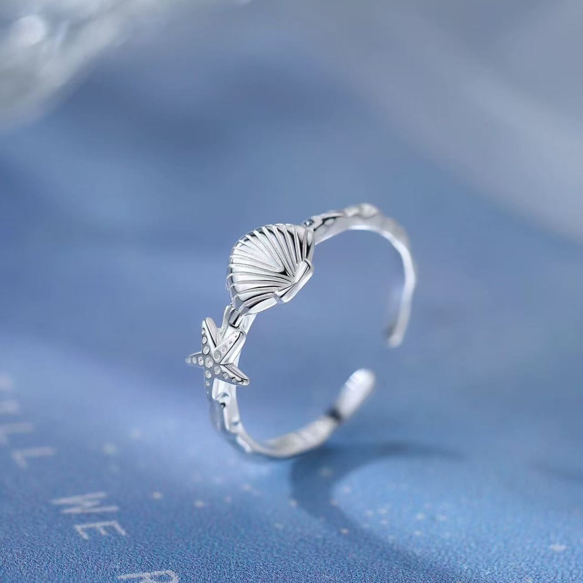 925镀银海星贝壳戒指小众女轻奢开口戒高级感素圈食指戒