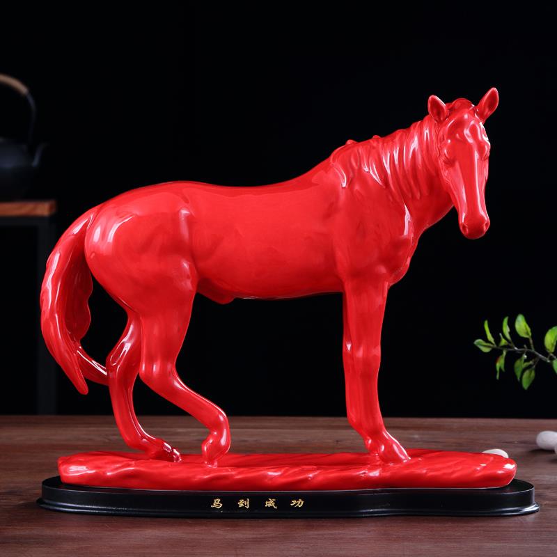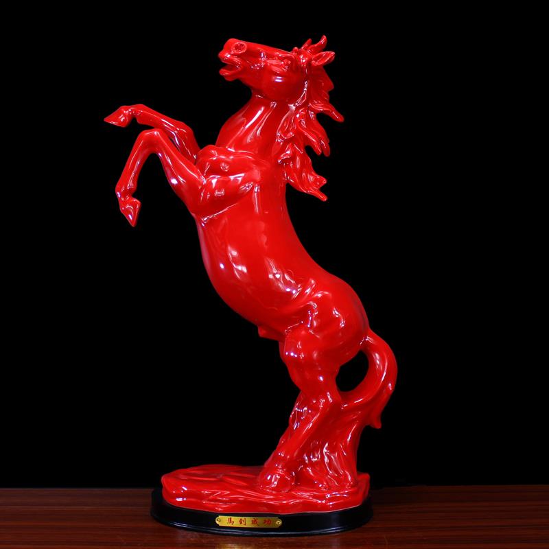 红色陶瓷骏马摆件招财领导办公室装饰高档公司开业送礼品高档礼物