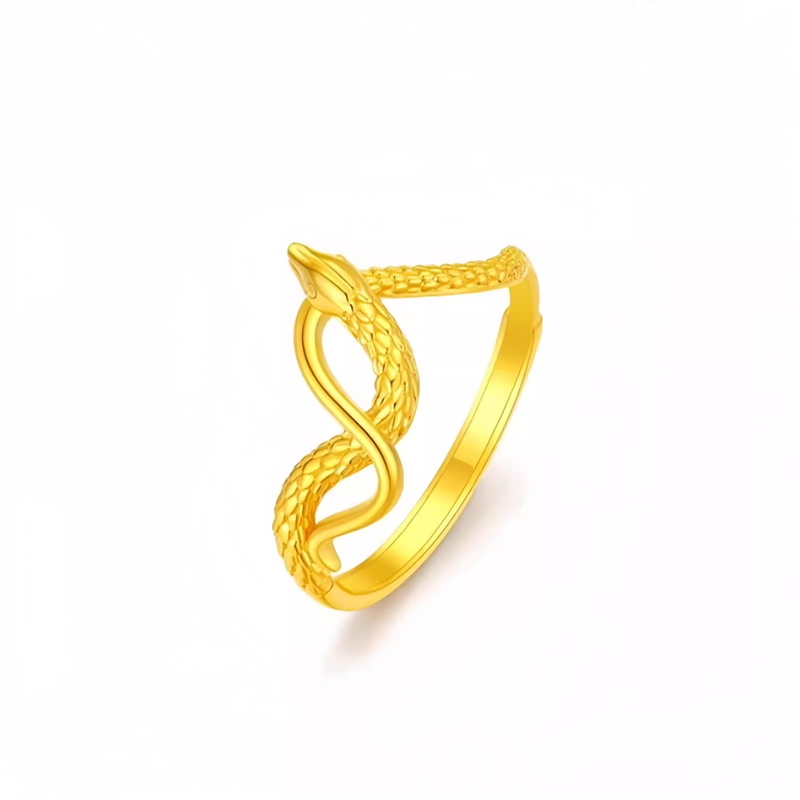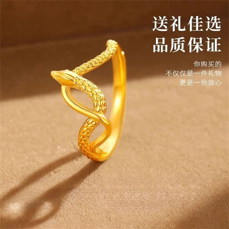香港雪禧水贝黄金灵蛇戒指古法生肖素圈金包银周年男女情侣款对戒