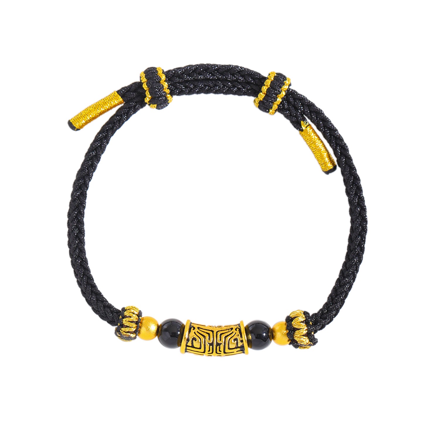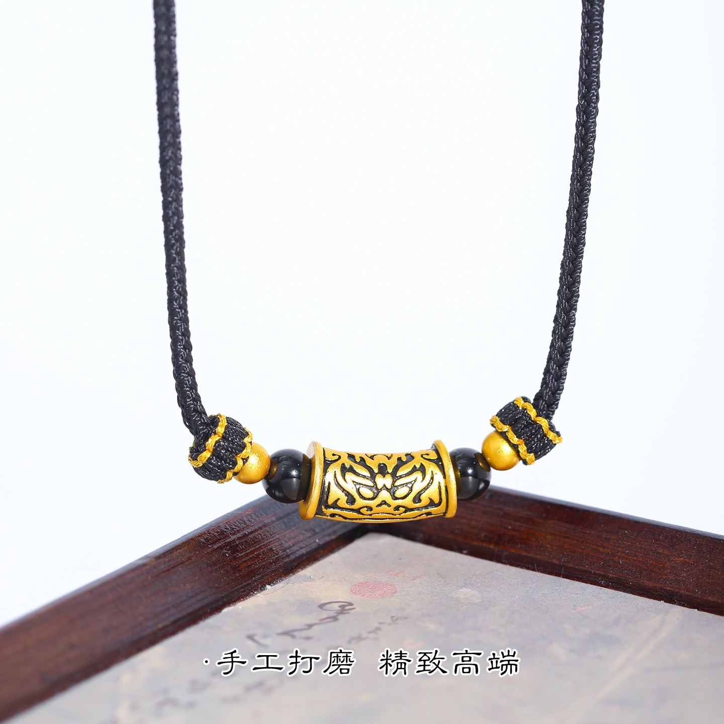 爆款网红沙金仿黑金饕餮图腾弯管手链项链刺青转运珠手工编织男女