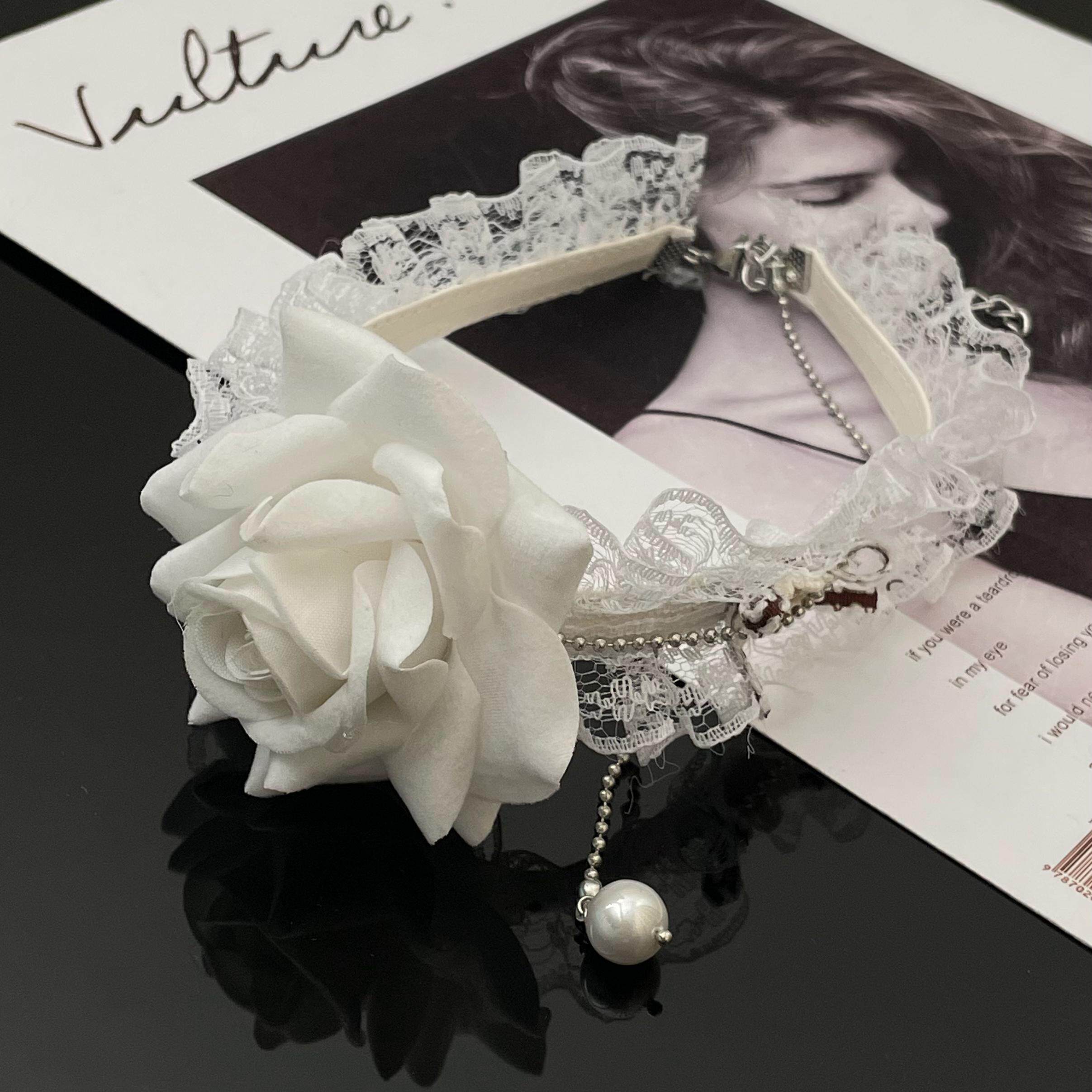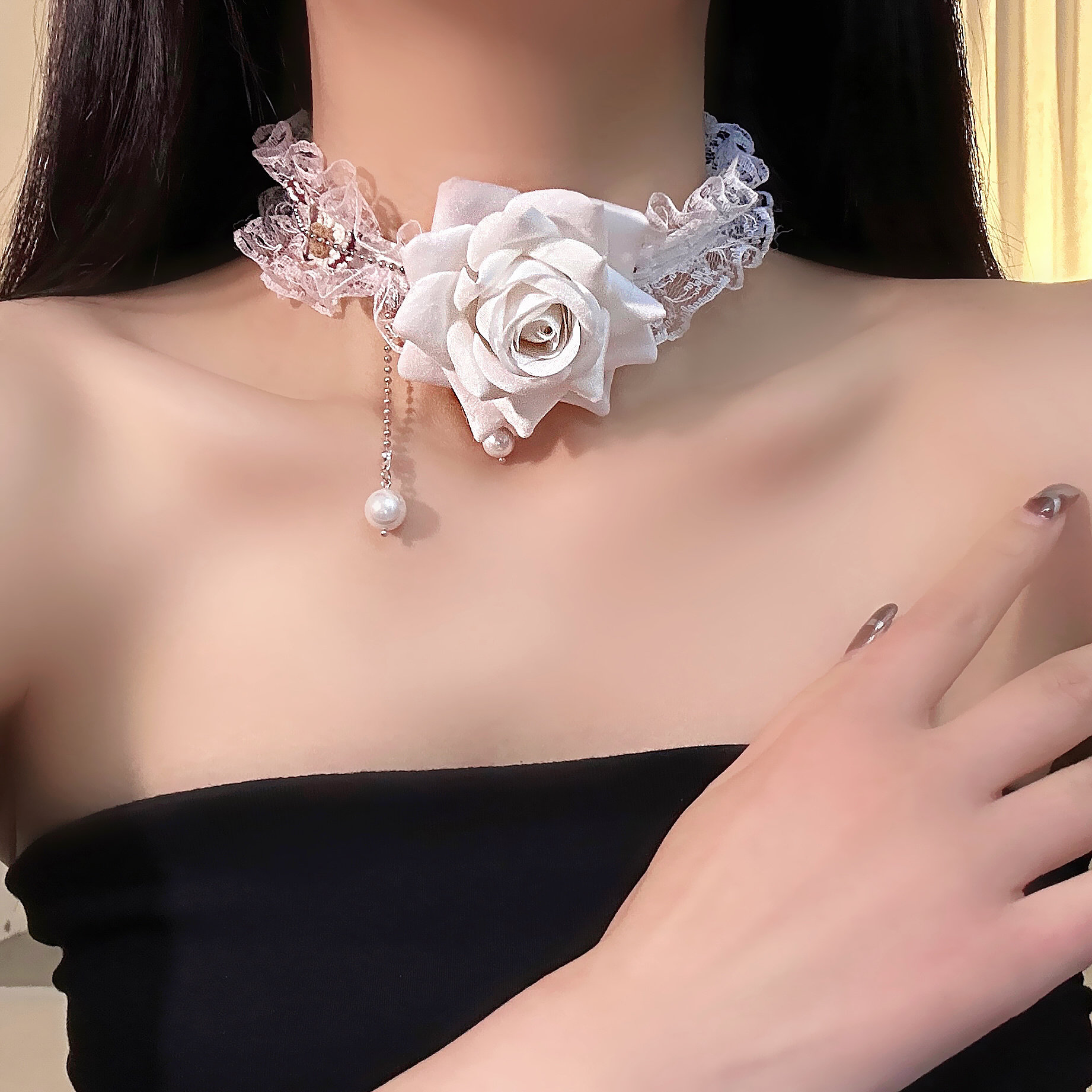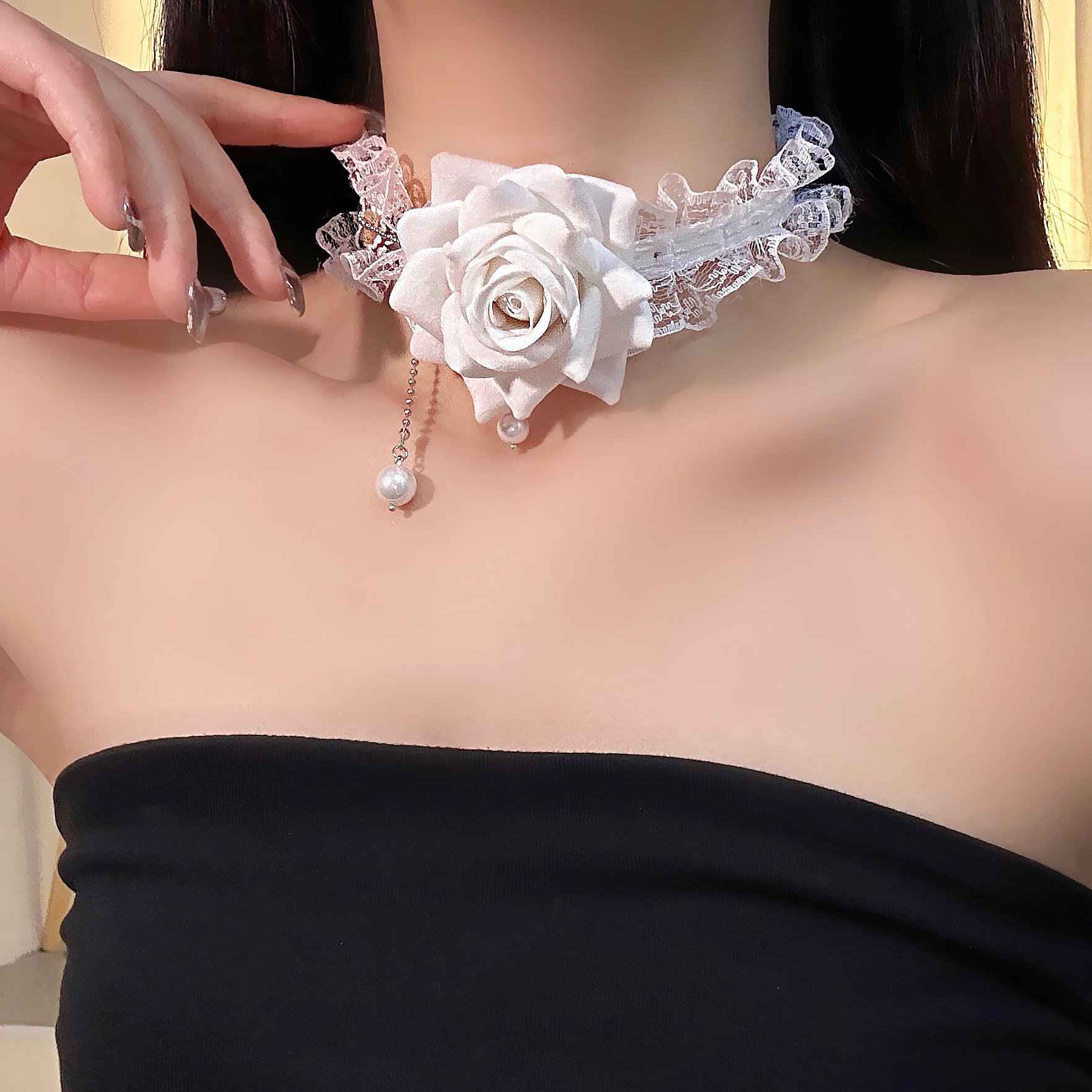 黑姑姑饰品气质百搭法式优雅温柔仙气白色蕾丝玫瑰项链choker颈链