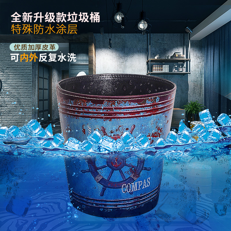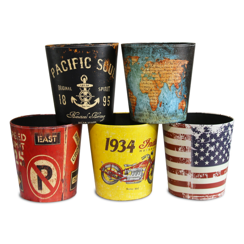 美式复古PU皮革垃圾桶 创意时尚家居摆件工艺品 收纳桶装饰品