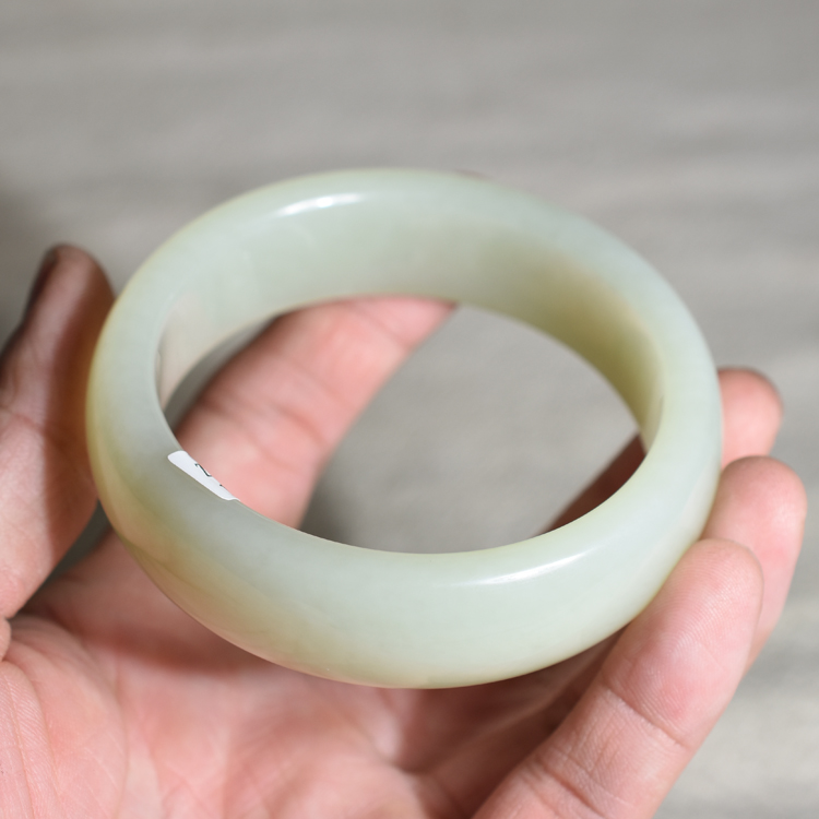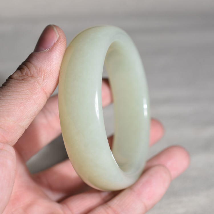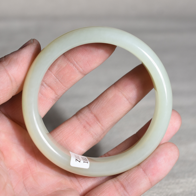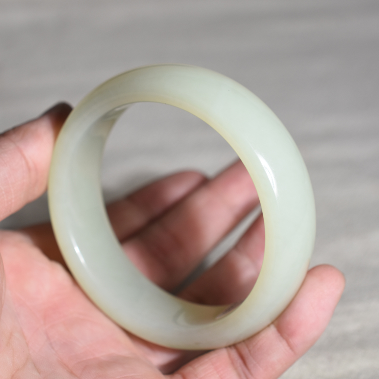 和田玉镯宽条57 58mm 正宗新疆料 暖白色调全品正装玉镯子 保真