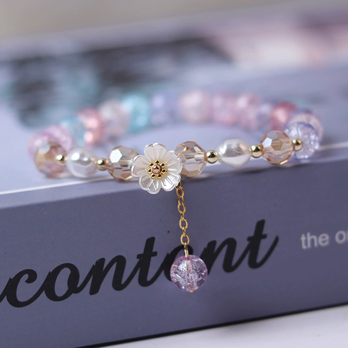 儿童手链女童紫色水晶白色花朵手镯串珠配饰女孩饰品高级女款手串