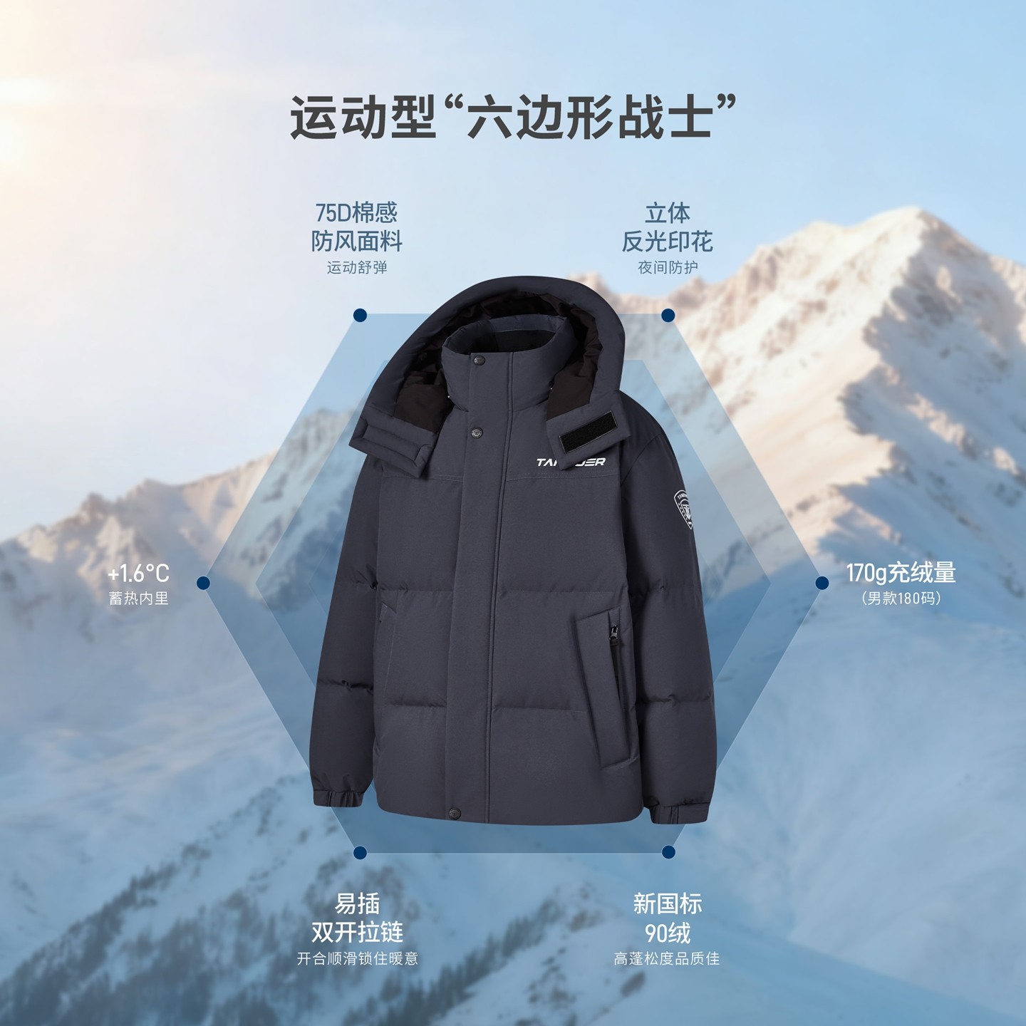 【高充绒】坦博尔男士羽绒服 加厚保暖可脱卸帽 舒适运动秋冬外套