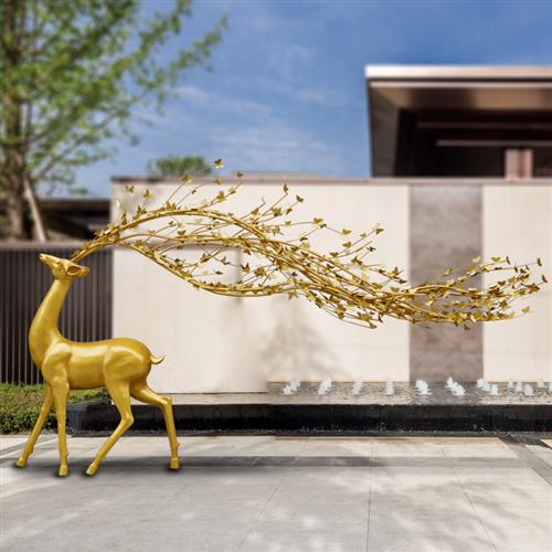 不锈钢镂空梅花鹿雕塑酒店大堂艺术售楼部装饰品园林景观麋鹿摆件