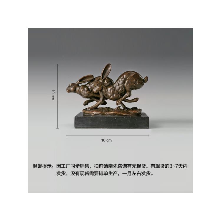 铜雕塑奔跑双兔AL318动物工艺饰品酒店客厅书房家居玄关桌面摆件