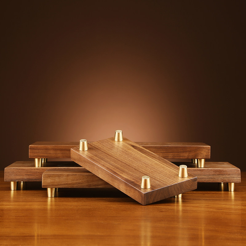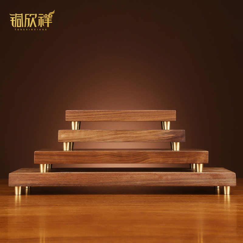 铜欣祥 胡桃木原木搭配底座新中式摆件长方形实木质带铜底底座