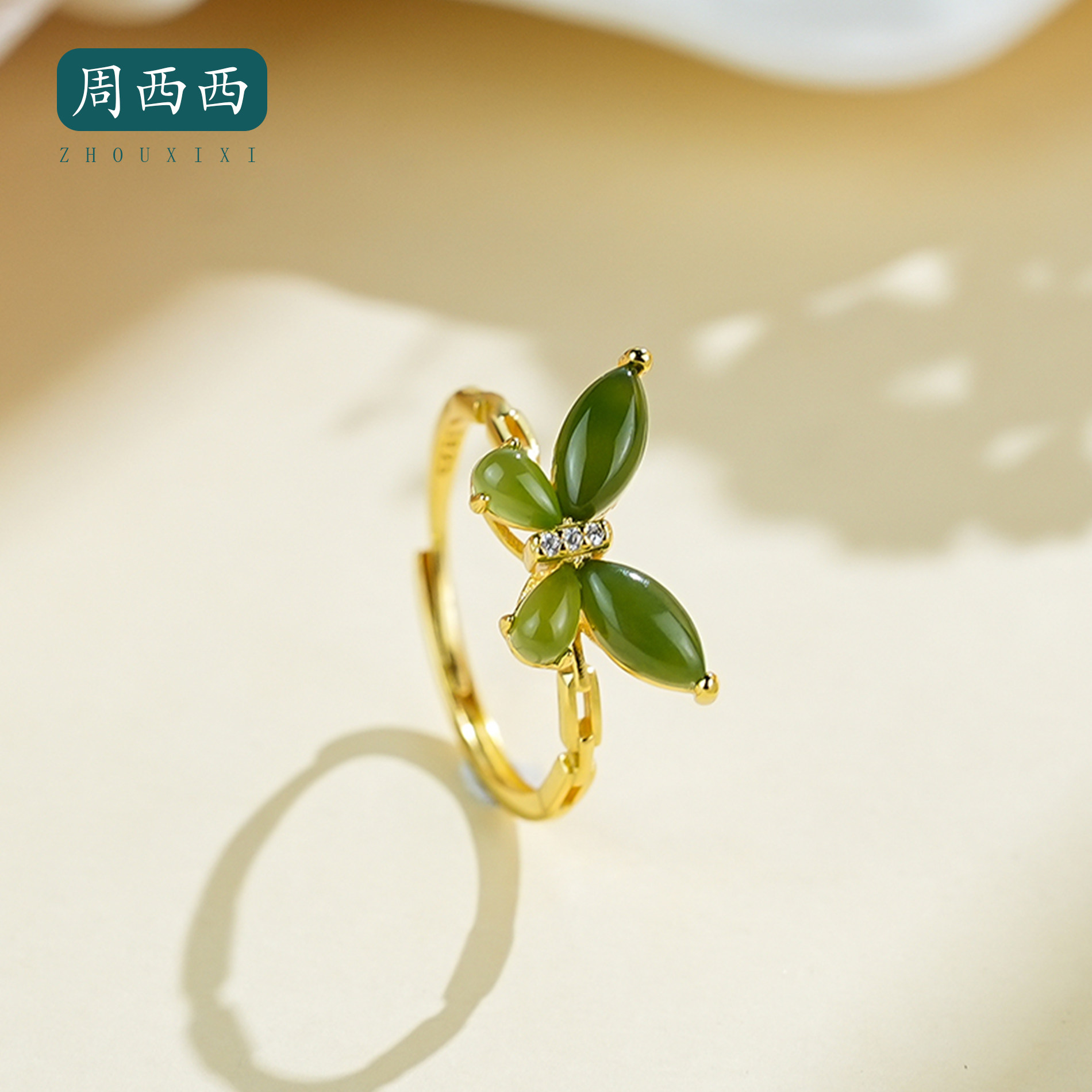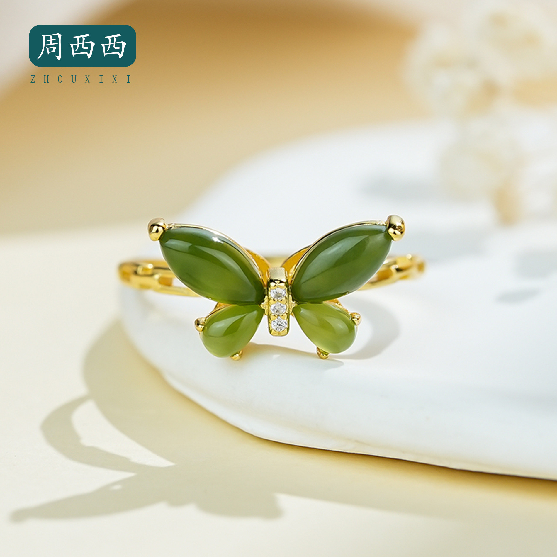 天然珠宝和田玉蝴蝶戒指s925银饰品首饰时尚百搭轻奢国风气质复古