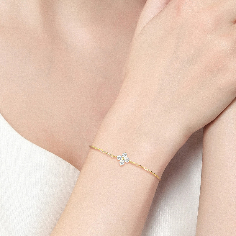尚美伯爵网红个性轻奢四叶草手链s925纯银莫桑石时尚百搭手链尚美