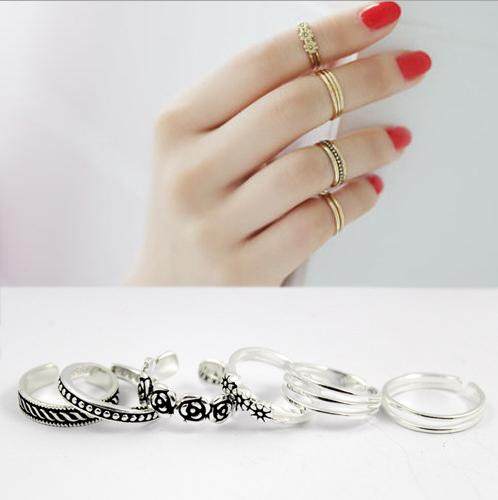 韩国925纯银关节戒指女指环套装简约孔孝真同款尾戒小指脚戒指潮