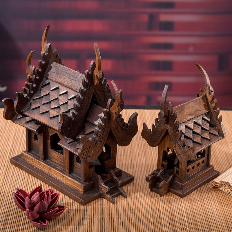 极速泰国特色工艺品东南亚风格实木房子模型摆件中U式客厅玄关装