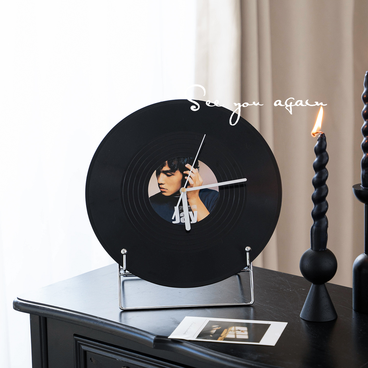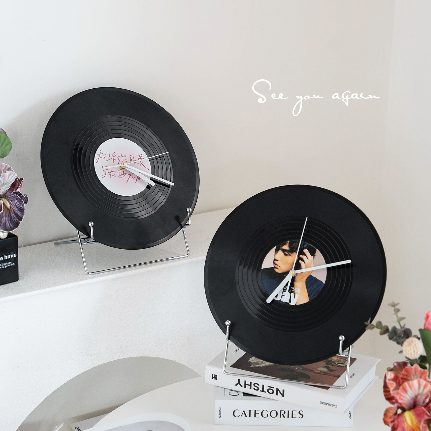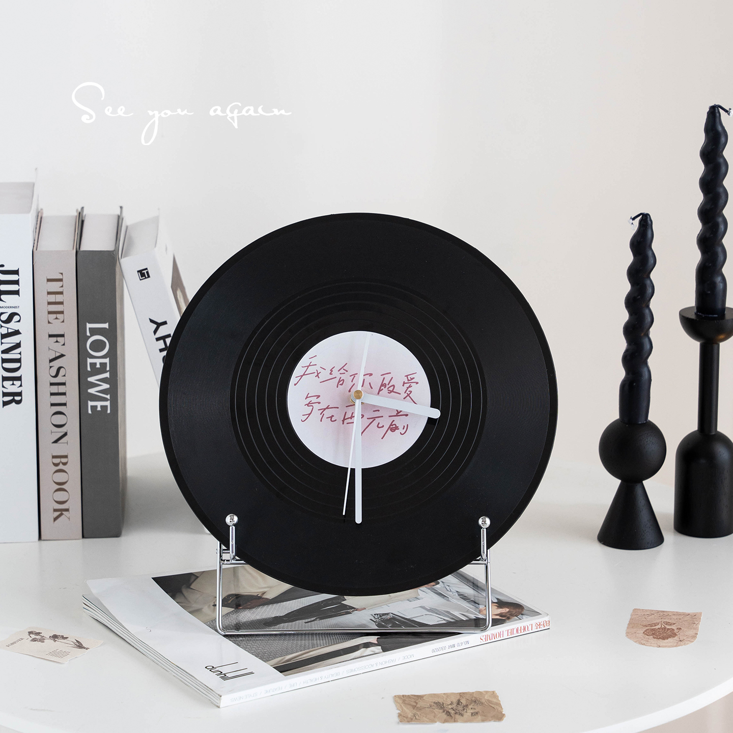 复古黑胶唱片创意高级感客厅办公室桌面轻奢高档静音钟表装饰摆件