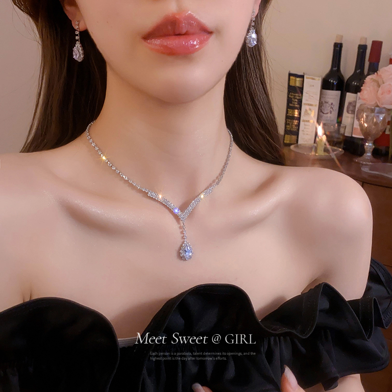 水滴项链女款2025新款锁骨链女高级感轻奢小众颈链耳钉套装配饰