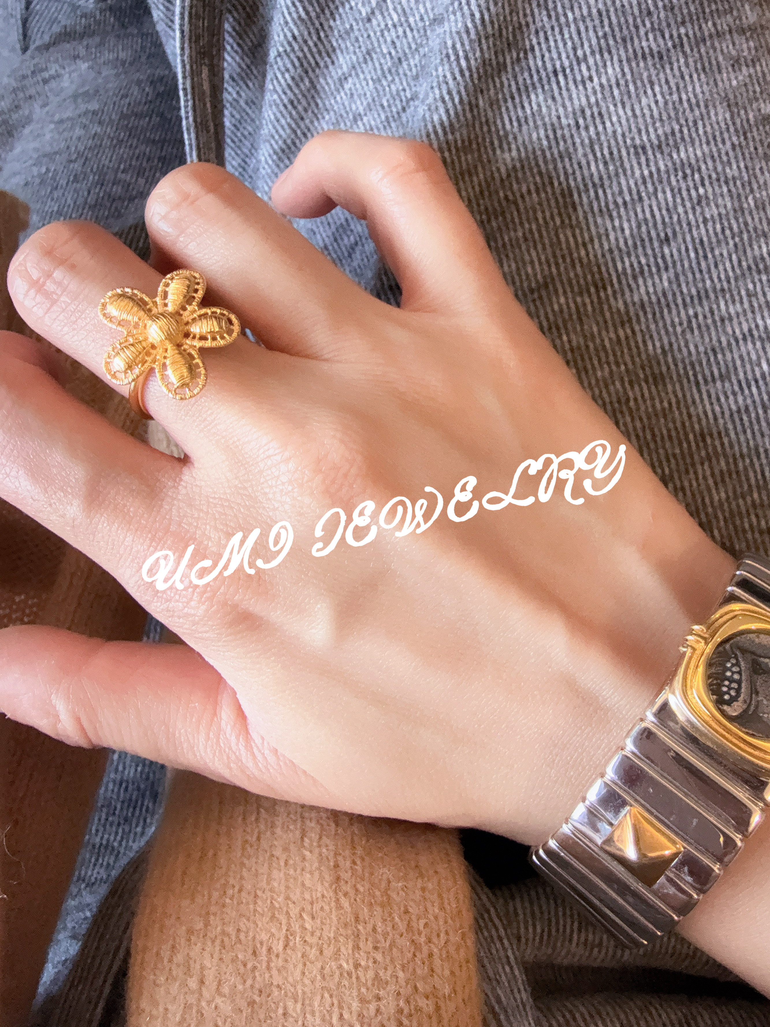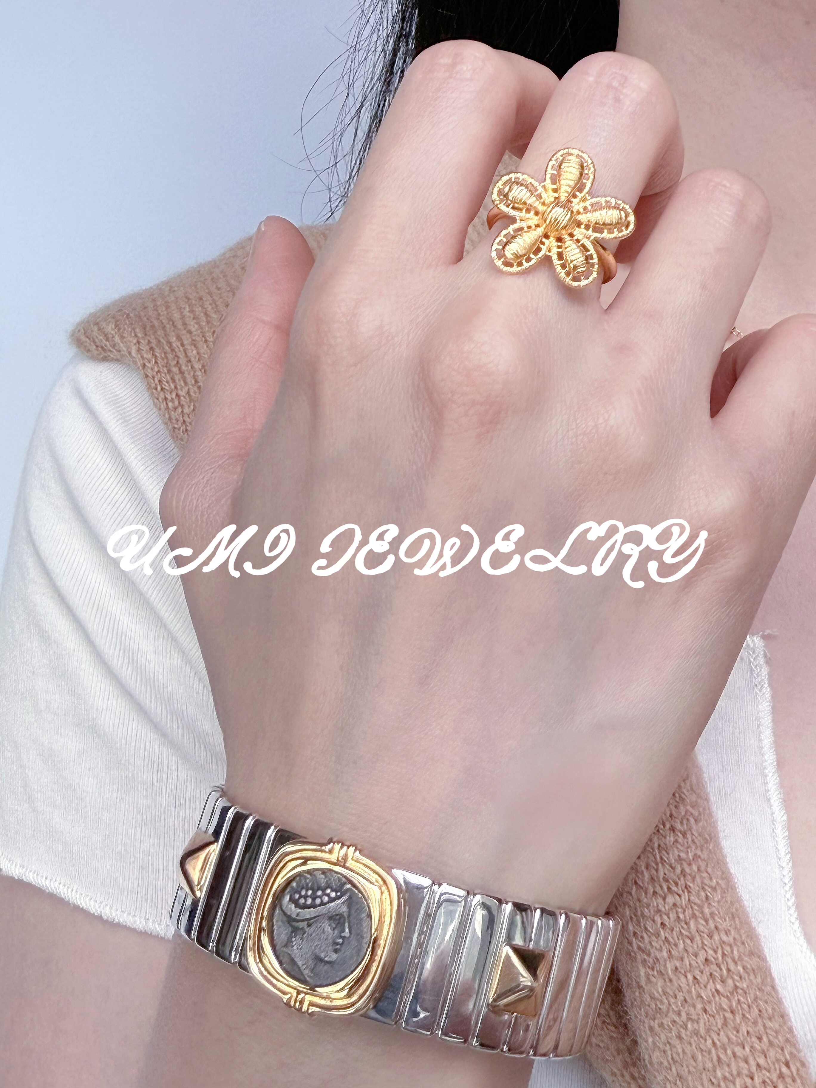 UMI【霸王花】S925银镀k金·镂空花朵拉丝小众轻奢高级感甜美女戒