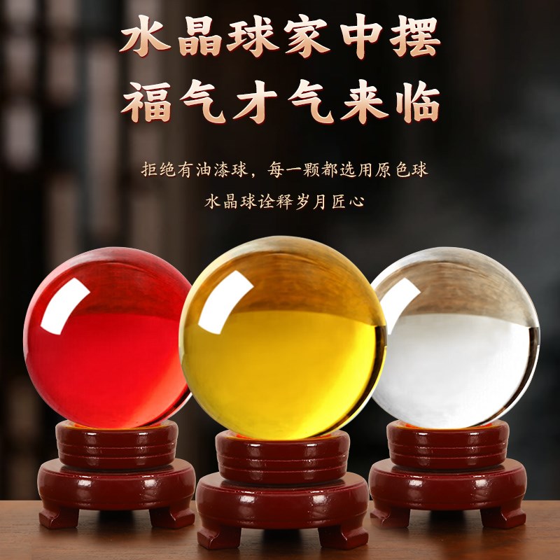 黄色水晶球摆件绿粉玻璃球底座可B旋转玄关客厅装饰桌面朋友办公