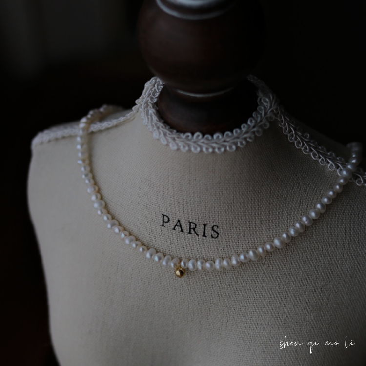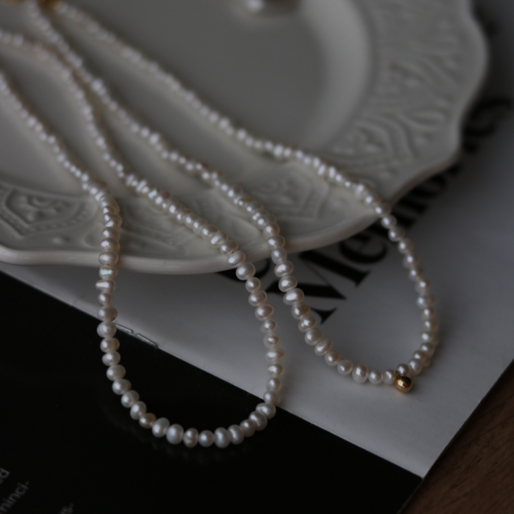 3.5-4mm包14K金珠天然淡水珍珠项链锁骨链原生松弛感简约复古颈链