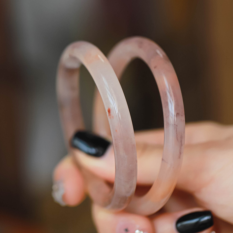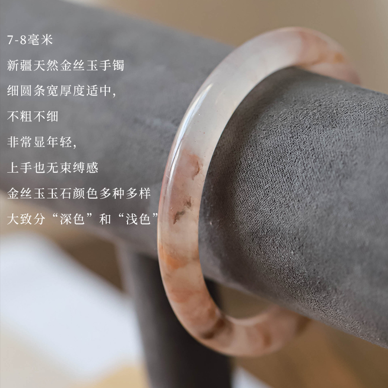 落樱|新疆天然真玉手镯少女款细圆条冰透飘花紫罗兰色金丝玉美人