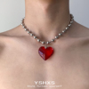 红色爱心金属项链女小众轻奢设计感甜酷辣妹锁骨链时尚个性颈链