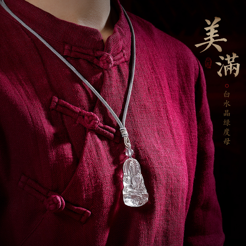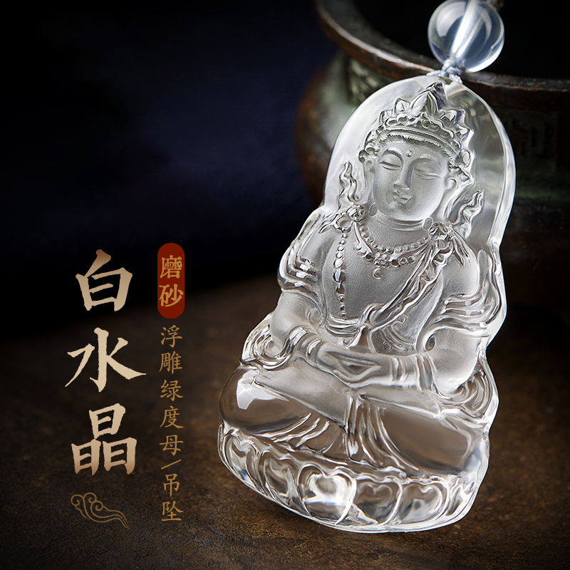 淼瑞天然白水晶吊坠官方旗舰店正品绿度母项链观世音护身原石挂件