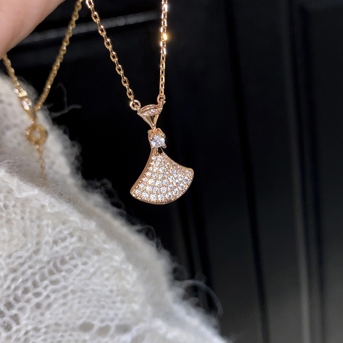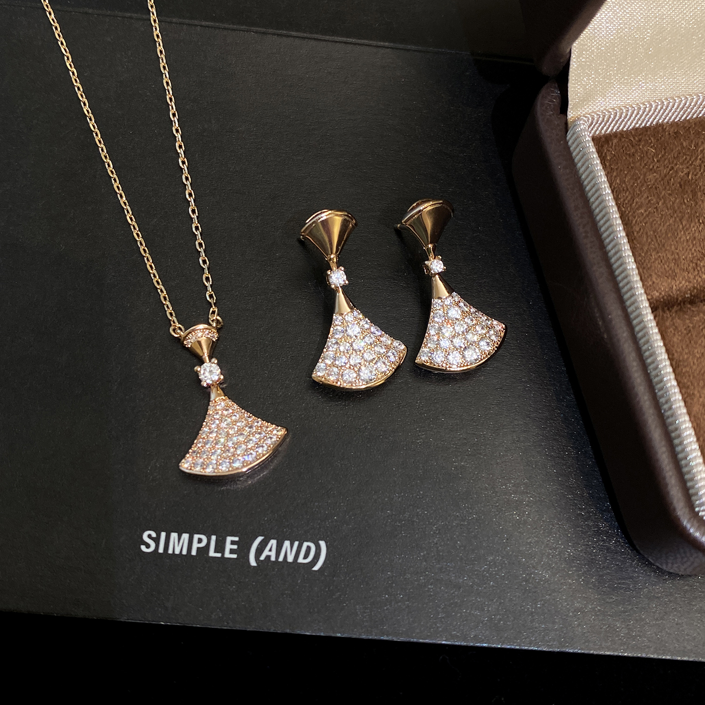 朱珠同款~微镶锆石满钻小裙子耳环轻奢扇形耳钉女18K玫瑰金锁骨链