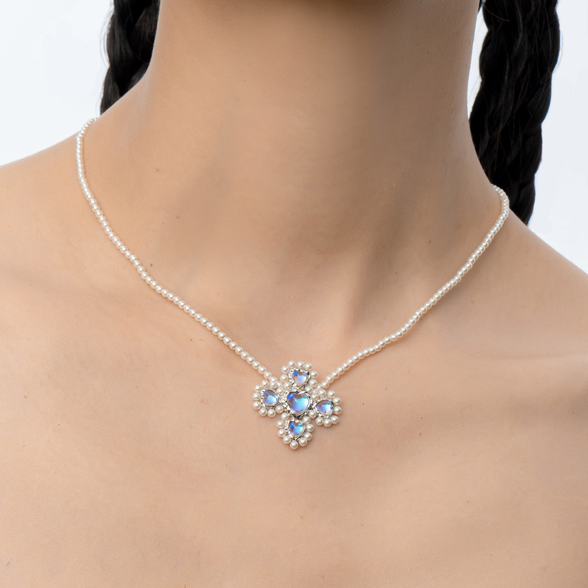 MMAGPY月光圆舞曲系列925银设计爱心月光石珍珠项链