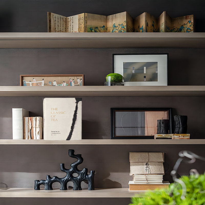 博艺新中式山水中文茶样板间装饰真书柜书房可翻页客厅售楼处摆件