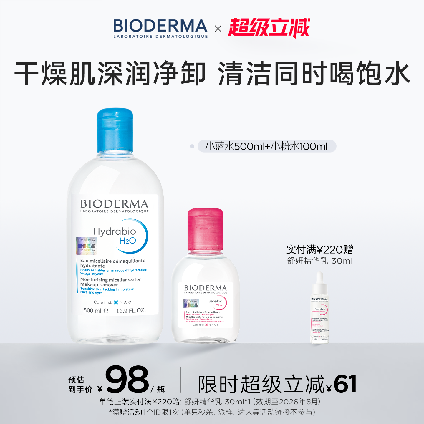 贝德玛卸妆水补水洁肤液保湿面部温和清洁润妍蓝水