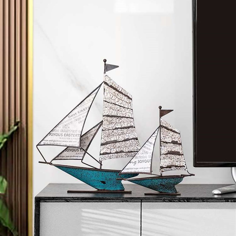 极速美式复古铁艺帆船模型摆件一帆风顺家居客P厅玄关电视柜酒柜