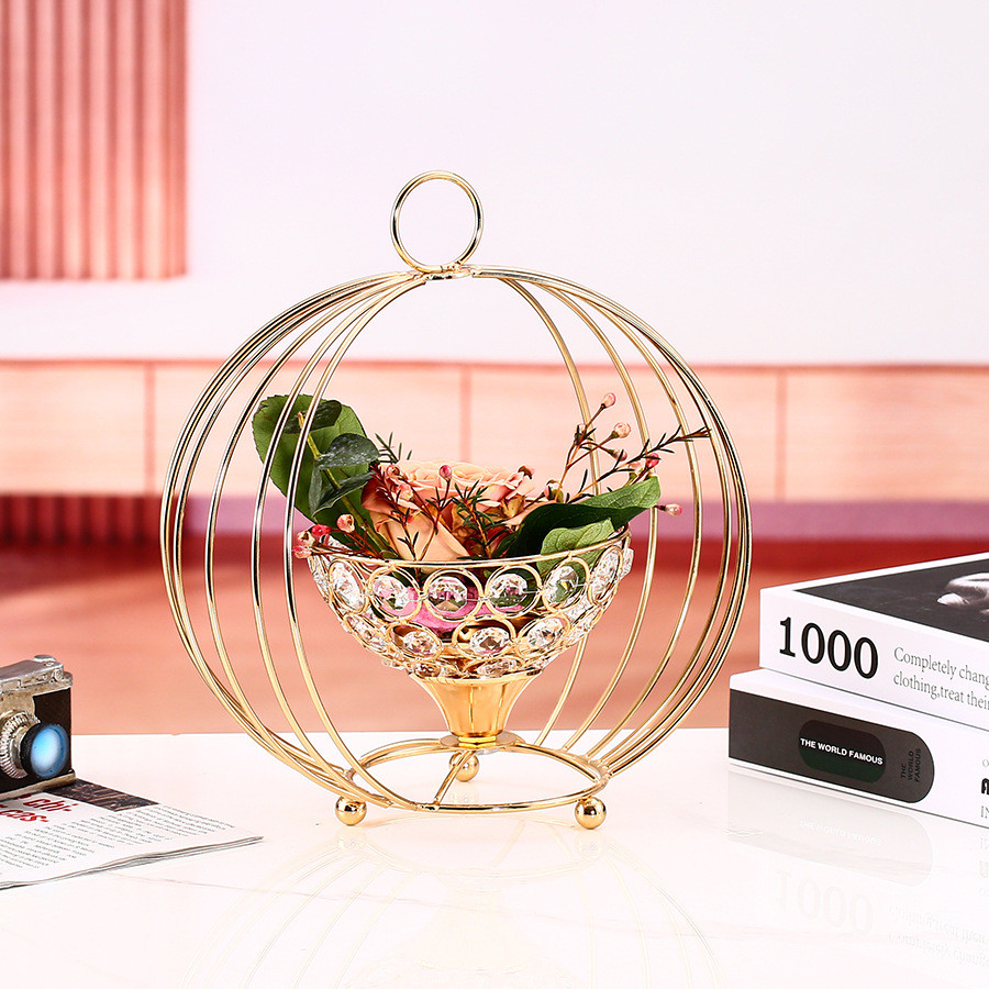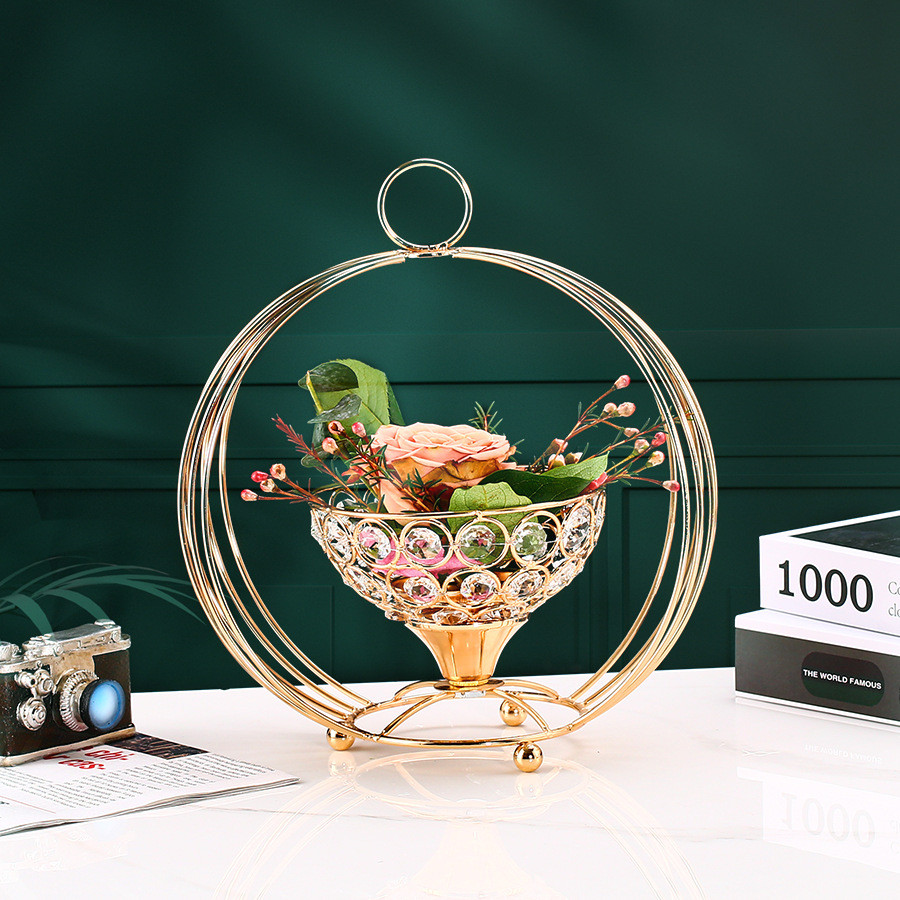 欧式水晶花瓶花盆创意金属水晶婚庆花瓶摆件烛台酒店家居烛光晚