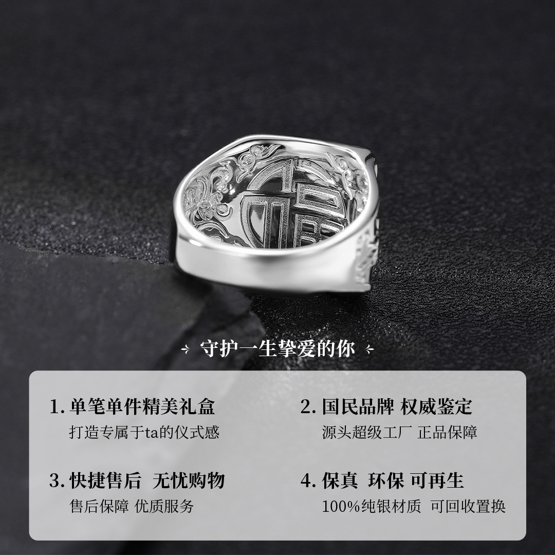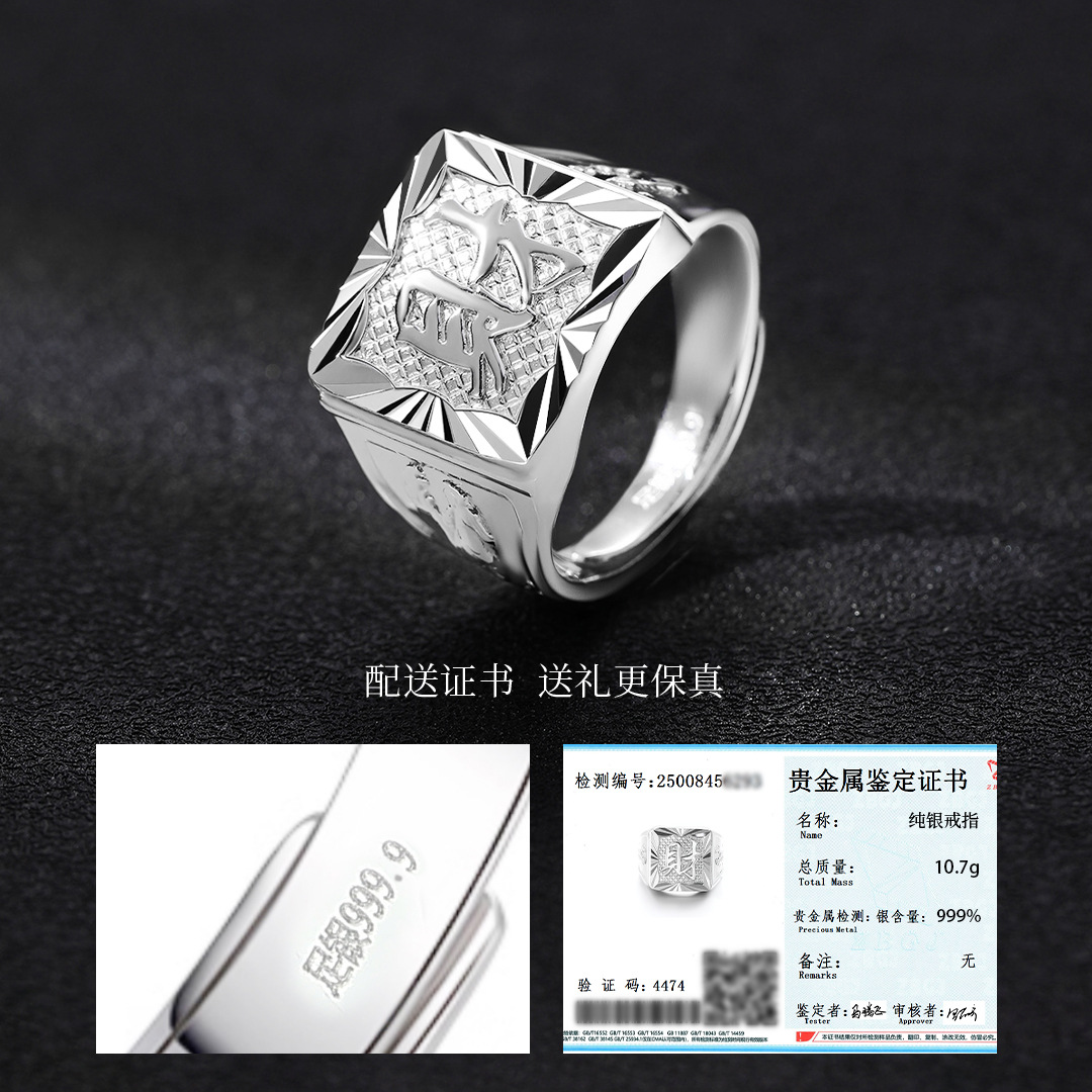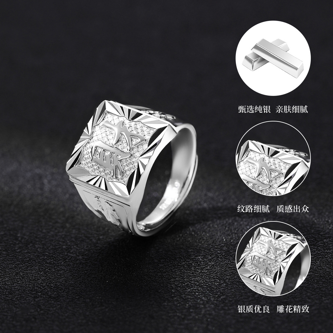 财丁兴旺男戒指足银9999纯银霸气四方来财指环时尚潮流指环送男友