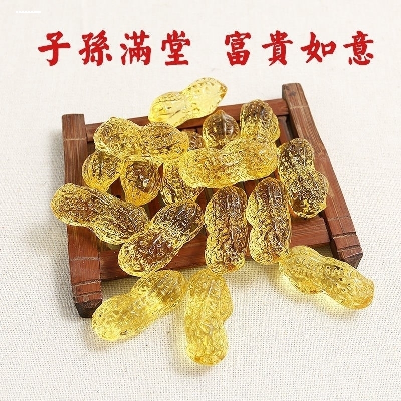 黄色水晶花生摆件婚庆摆件聚宝盆装饰节日礼品婚房吉祥装饰工艺品