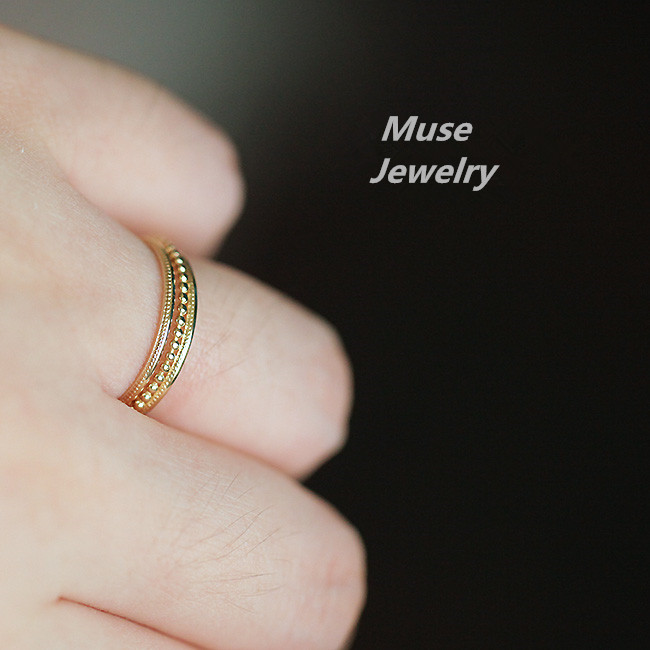 925纯银镀14k黄金 日系风格极简约极细基础款叠带女戒尾指 通勤款