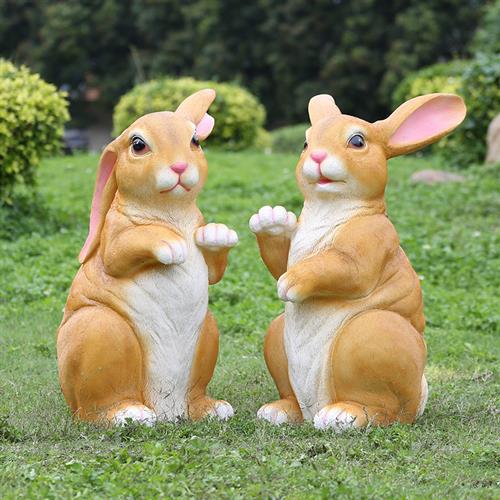 户外花园林别墅景观草地小品仿真动物雕塑庭院装饰小白兔子玻璃钢