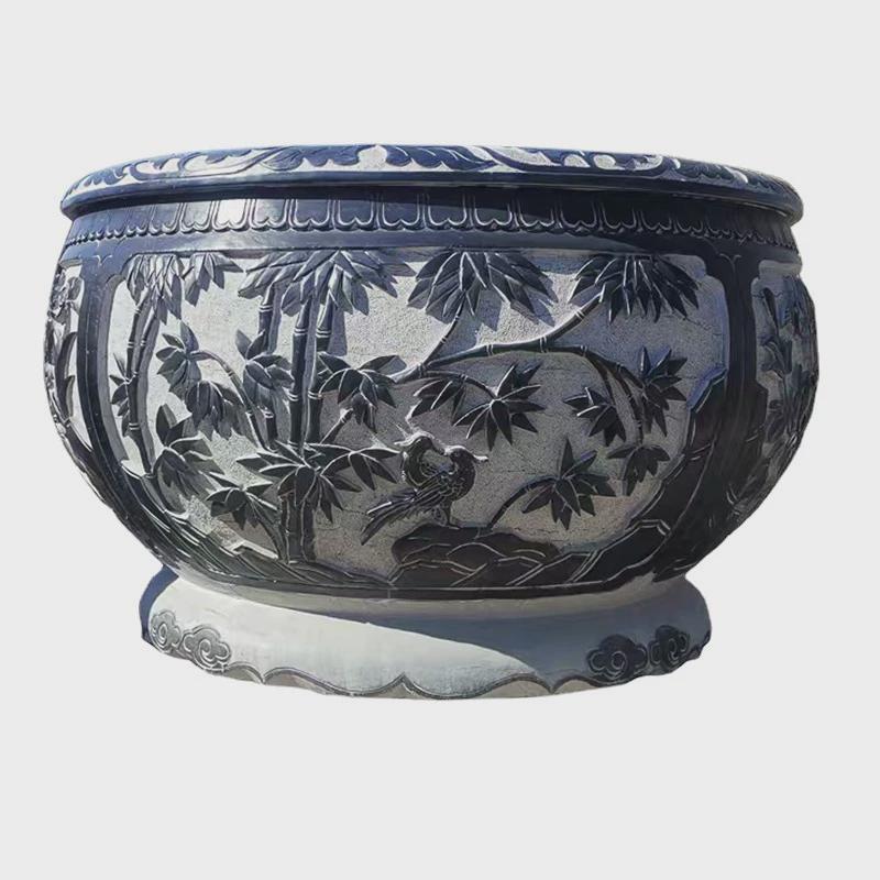 青石荷花养鱼水缸园林仿古中式养鱼养花石缸青石雕刻圆形鱼缸