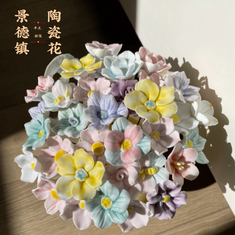 景德镇!陶瓷永生花 家居摆件 精品高温瓷 小众礼物 陶瓷花束