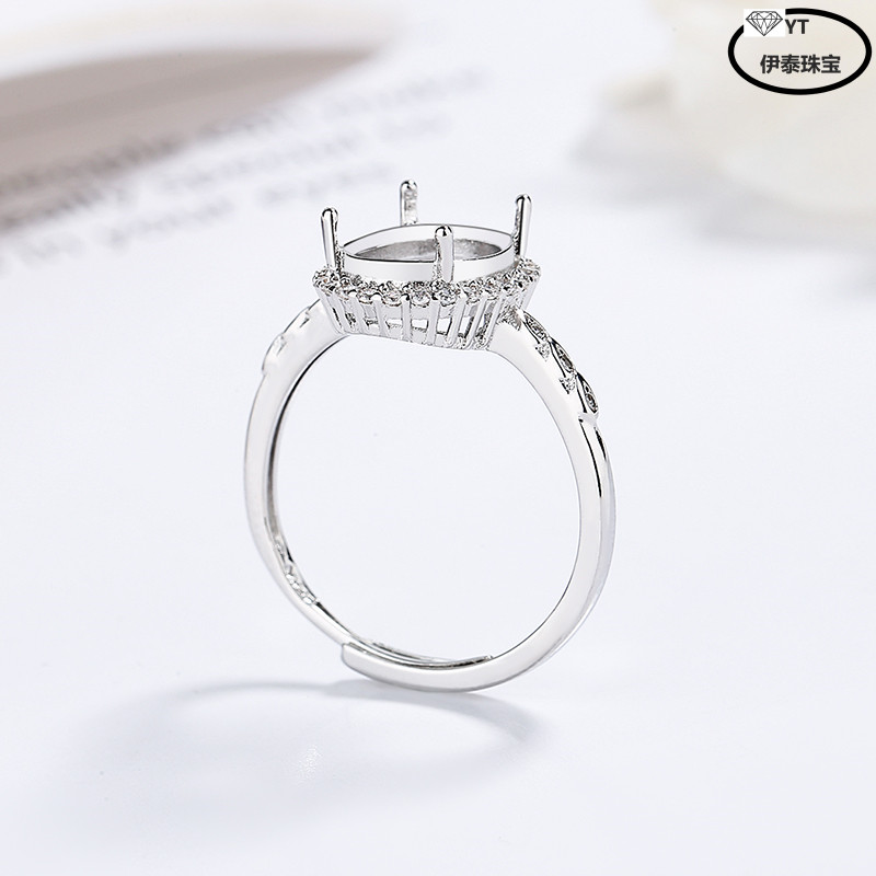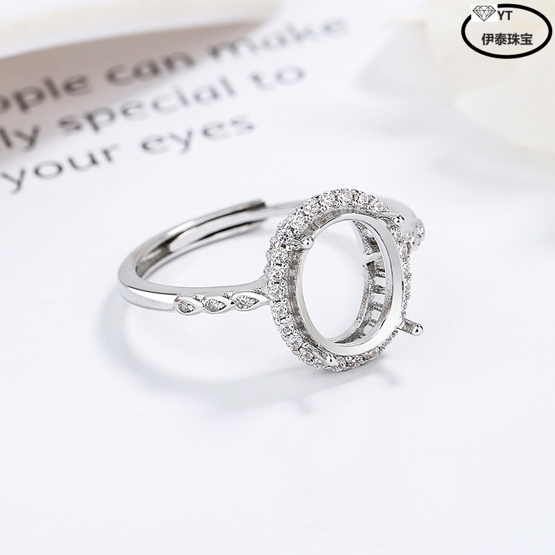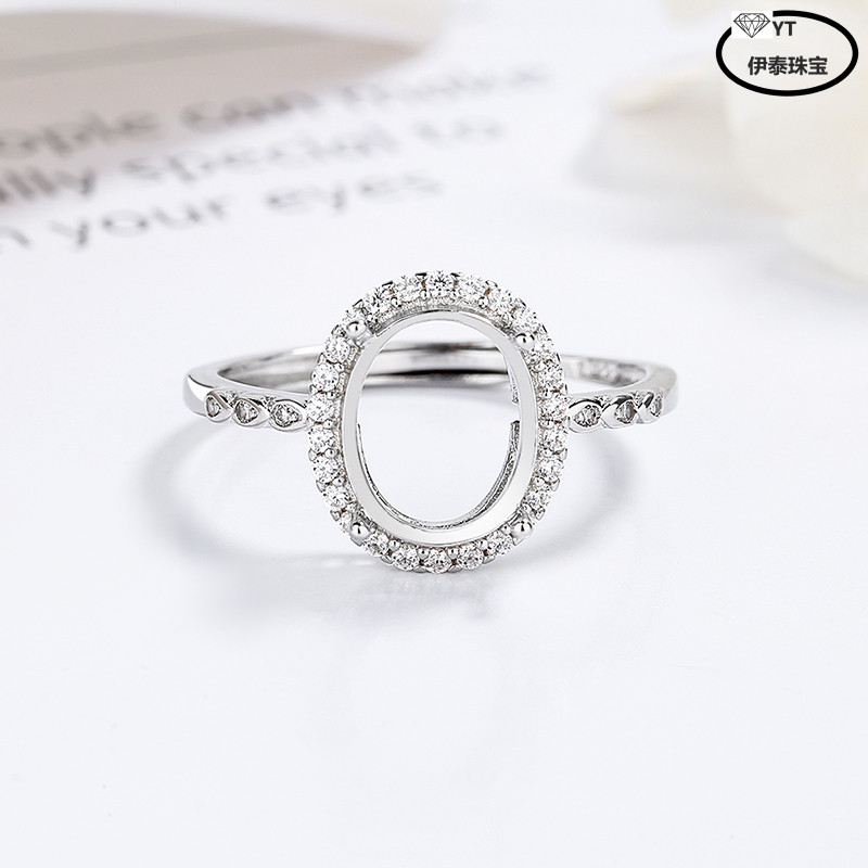 新网络直播镀S925纯银满钻女戒指托空托镶嵌翡翠宝石钻石戒面戒托