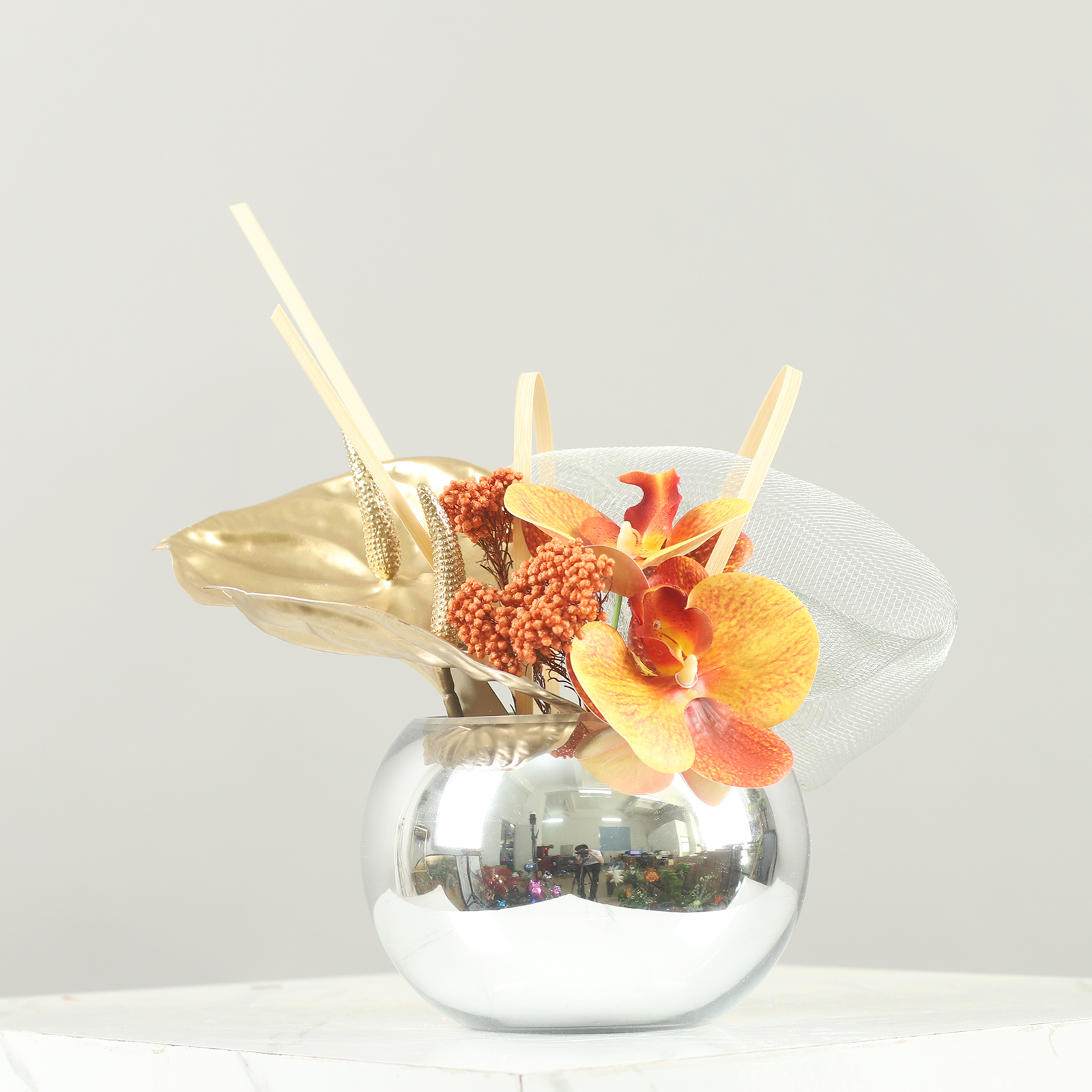 简约仿真花金属摆件售楼处样板间客厅酒店茶桌禅意盆景装饰摆设