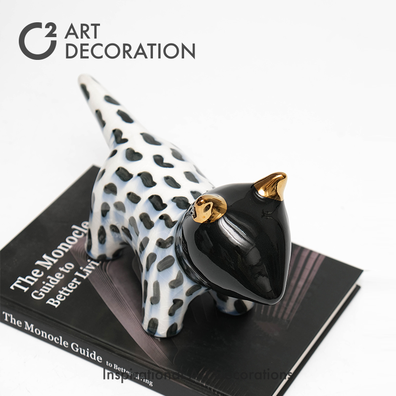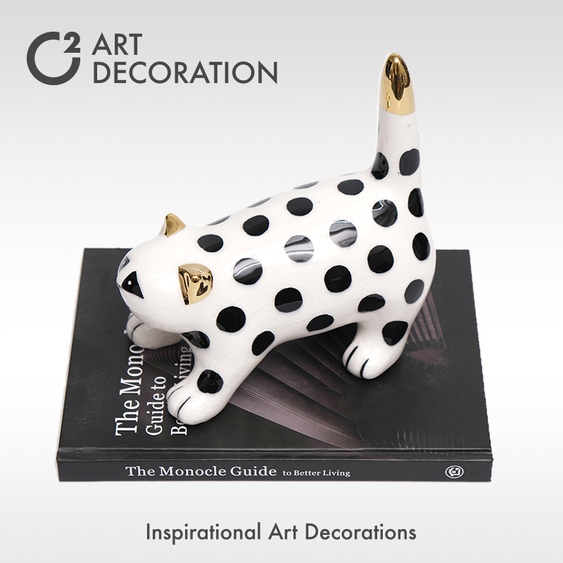轻奢手绘陶瓷黑白斑纹波点猫狗茶几玄关电视柜书柜桌面装饰品摆件
