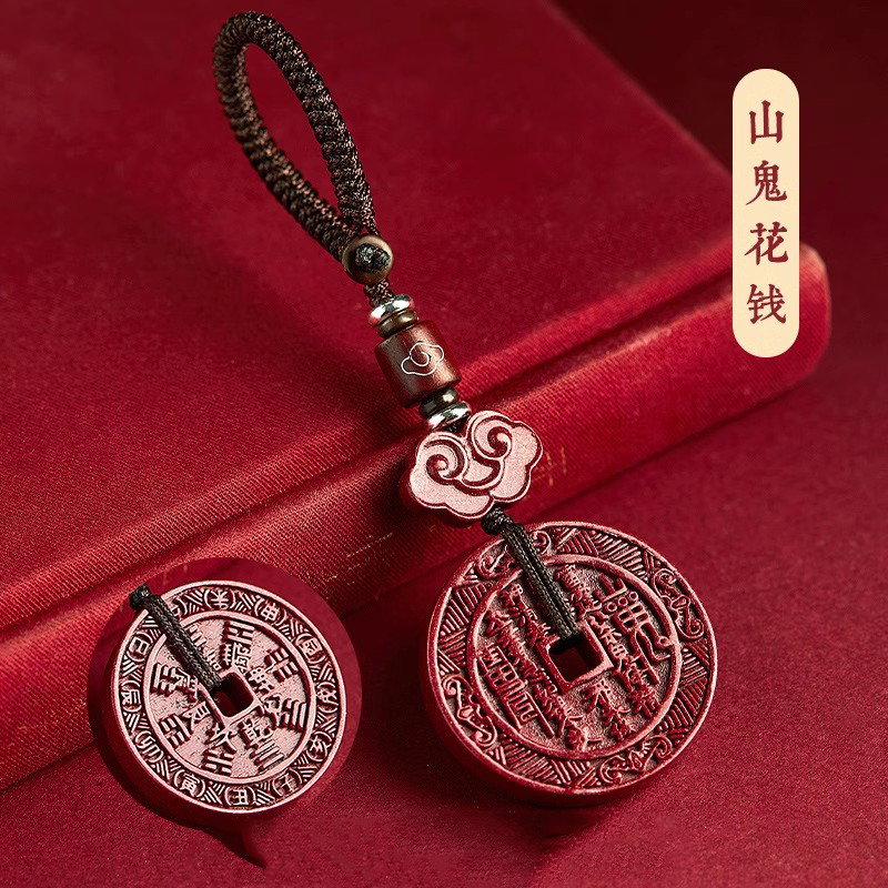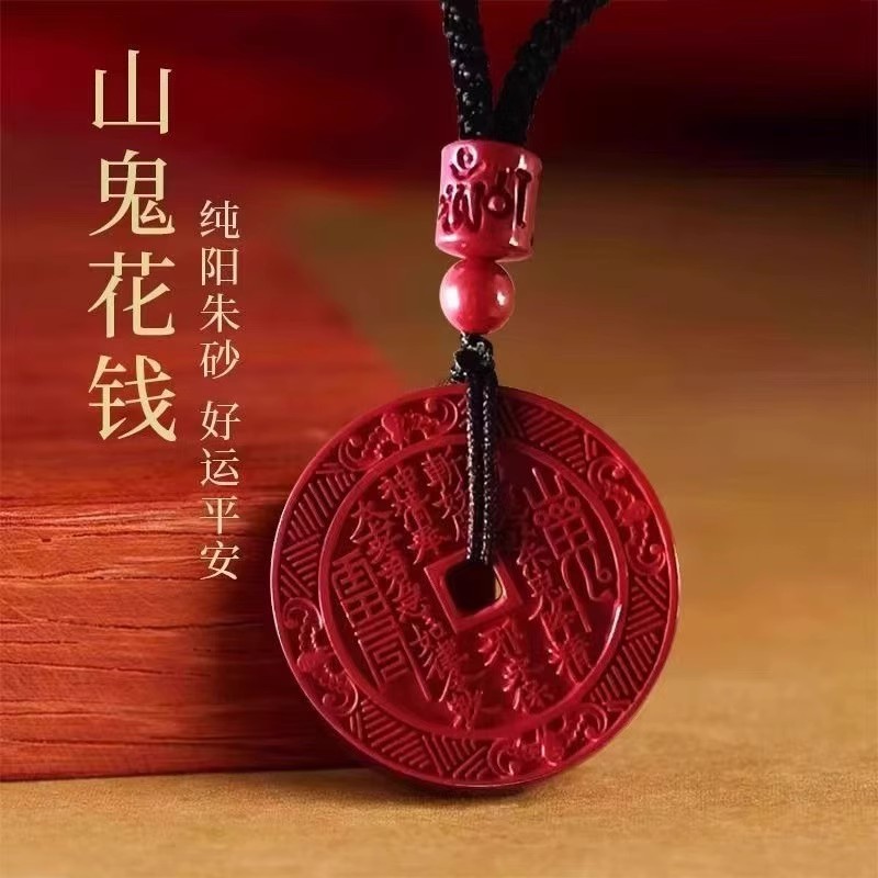山鬼花钱真朱砂过光男女吊坠本命年护身符道家项链钥匙扣挂件礼物