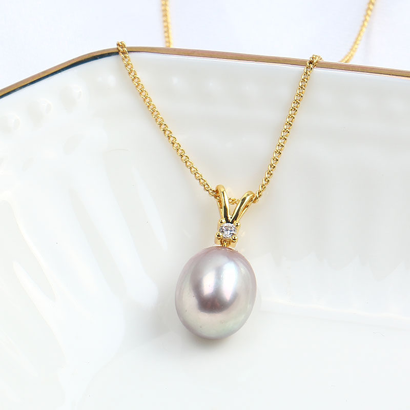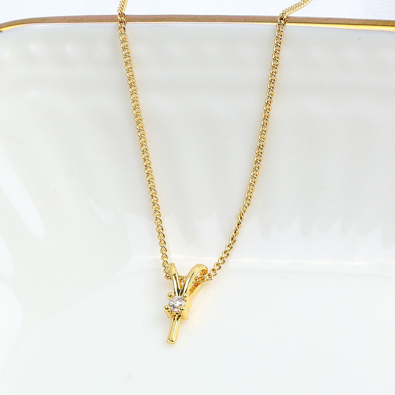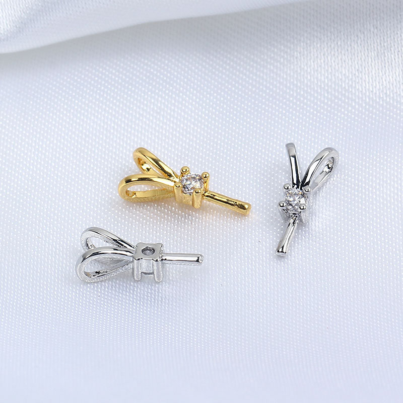 国产14k注金保色 简约兔子头单钻珍珠项链V字吊坠空托DIY配饰配件