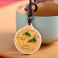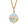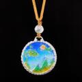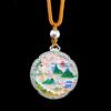 山水风景9999足银圆牌吊坠女复古中国风双面珐琅纯银项链毛衣链