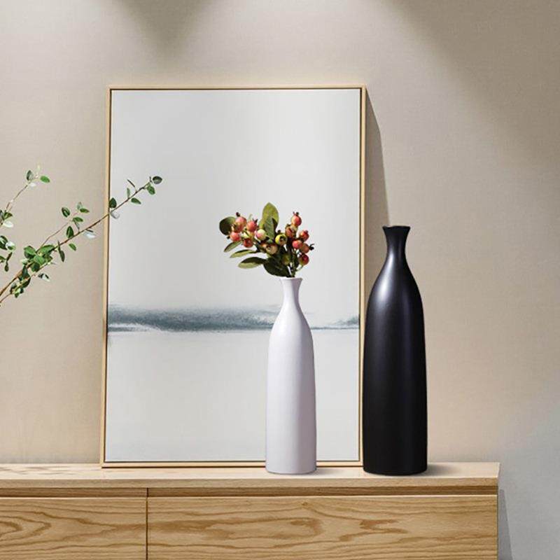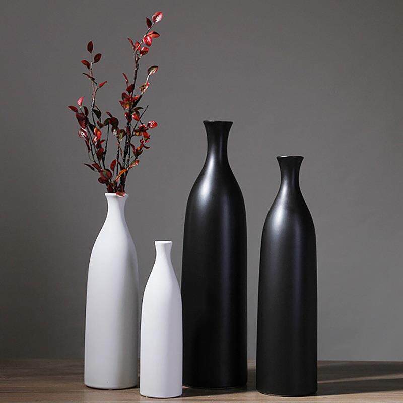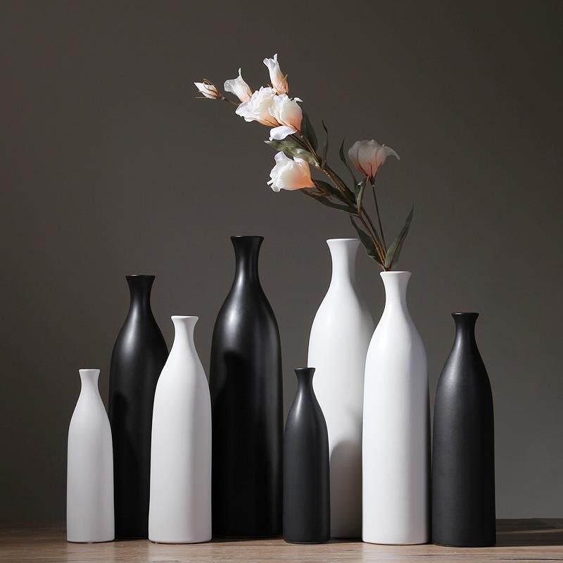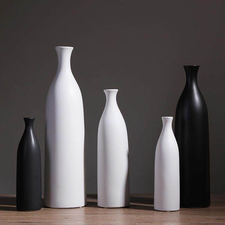 经典黑白色复古单支花瓶干花美式细口简约陶瓷摆件客厅装饰工艺D&